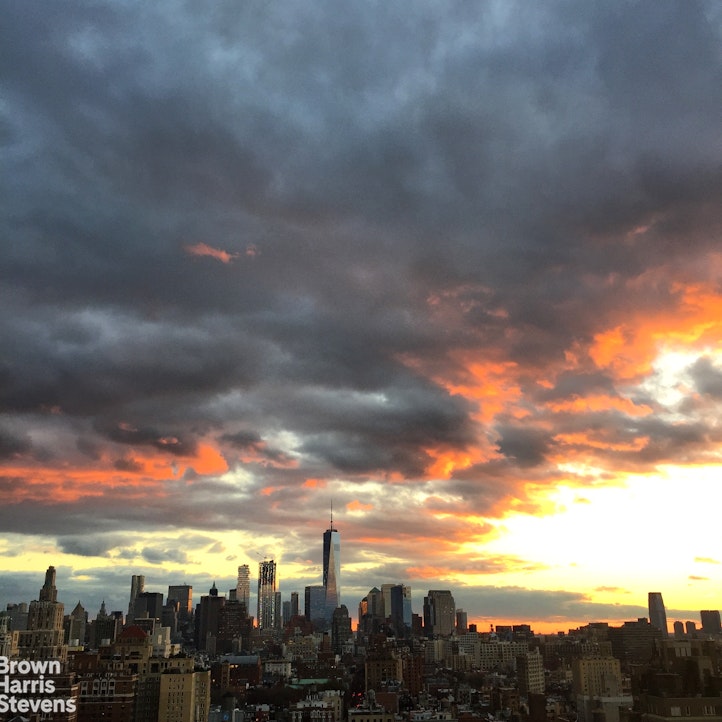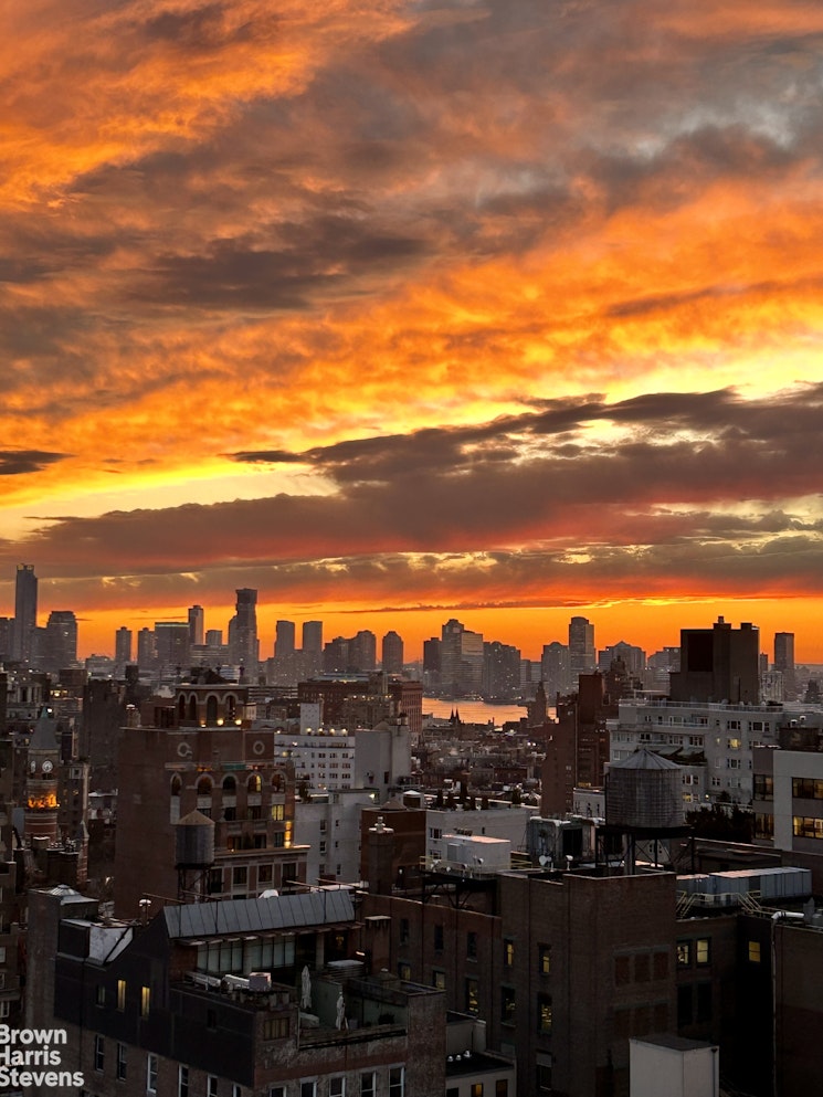 Located at the crossroads of Union Square, the Flatiron district and Greenwich Village, apartment 22A offers modern condo living with breathtaking southern views of the downtown skyline. A gracious entry foyer leads to a generous living and adjoining dining room, with landmarked views. The open kitchen is fully renovated. The living room and dining room face south over all of downtown, and a magnificent balcony provides the ideal setting for enjoying magical sunsets. Refined details abound-from pristine Brazilian walnut wide-plank floors to oversized windows framing stunning city vistas. The gourmet eat-in kitchen is equipped with premium appliances, including a Sub-Zero refrigerator and Miele dishwasher. The primary suite offers open views, abundant natural light, a large walk-in closet with custom shelving, and an additional closet for extra storage. The luxurious en suite bathroom features a soaking tub and a generous glass-enclosed shower. Additional conveniences include a Bosch washer/dryer and Fios high speed internet.
