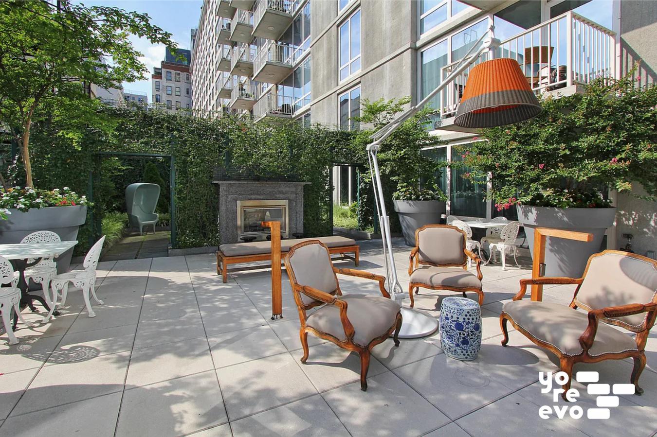 340 East 23rd Street is a full-service building designed by Philippe Starck. Amenities include a 24-hour doorman, fitness center with sauna and steam room, a full-floor residents lounge with a library, screening room, billiards area, and sundeck, plus a landscaped roof deck with river and city views.