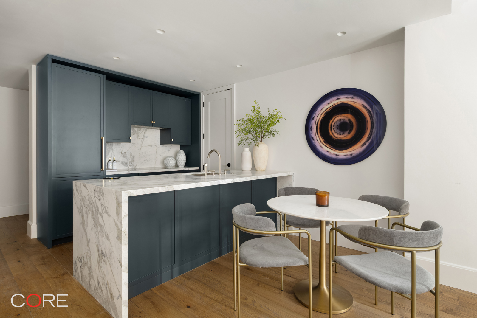 Designed with a focus on light, proportion, and timeless elegance, Residence 4C reflects the craftsmanship and vision that define The Village West. Beyond the home, residents enjoy four full floors of amenities, including a multi-level courtyard and rooftop terrace, yoga and spin studios, a spa treatment room, an infrared sauna, and a naturally lit fitness club. Social and leisure spaces, such as a bar and lounge, co-working areas, a billiards room, a golf simulator, and a children’s playroom, are complemented by conveniences like bicycle storage, laundry facilities, a dog wash, and a 24/7 concierge.