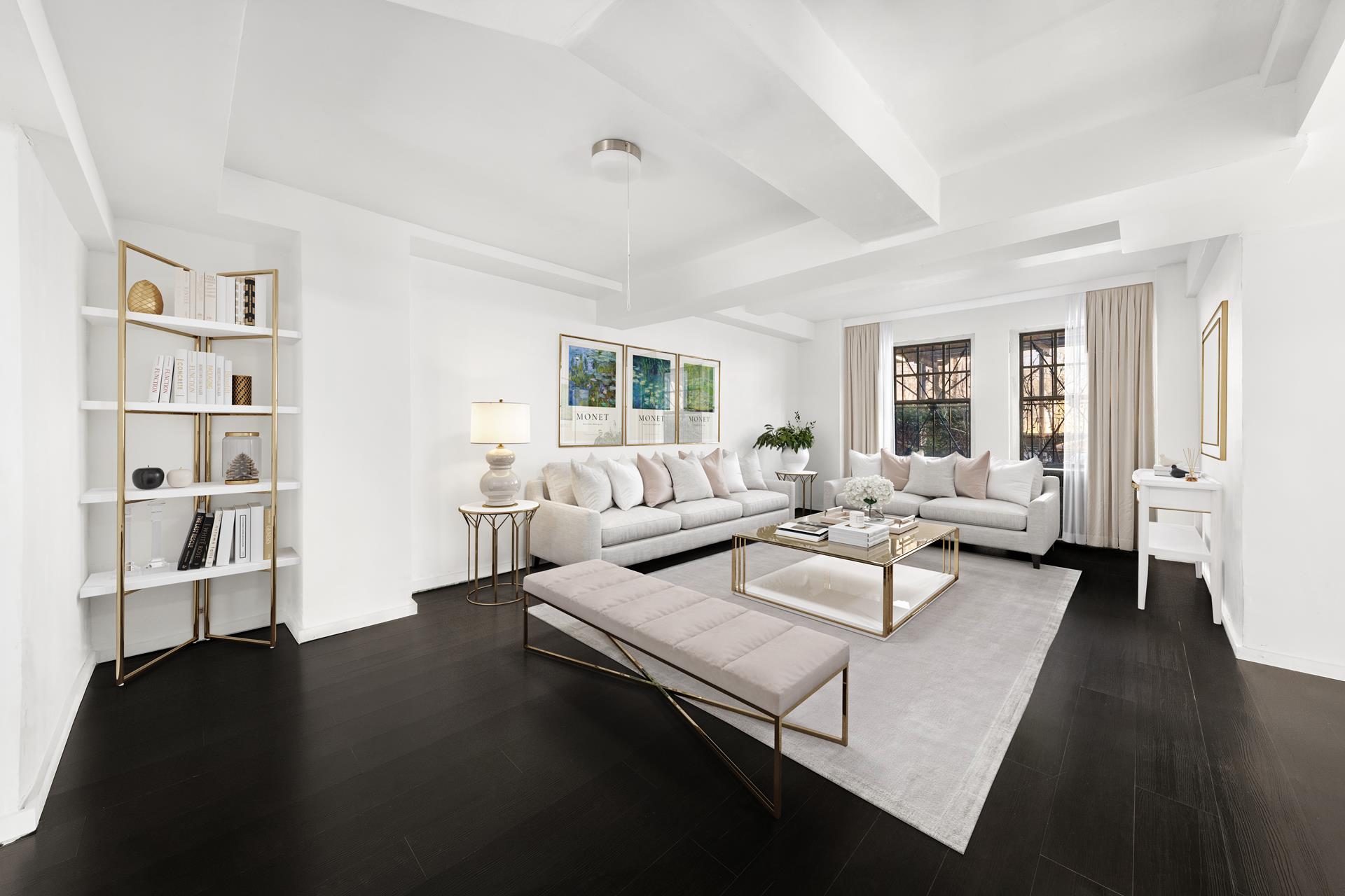 Introducing 1B at 965 Fifth Avenue - A rare & unique opportunity to configure a pre-war 2,000 SF ground floor apartment directly facing Central Park to your specifications! A former doctor's office for many years, the unit is zoned residential and has been fully "white boxed" for a new owner to create their vision. Bring your architect and design the home of your dreams. With five windows facing Central Park, the current floorplan offers tons of flexibility to capitalize on the amazing views and open layout. Images shown are virtually staged to offer inspiration and the floor plan is representative of many other B-line residences. Flip tax is 2% of the purchase price, to be paid by the buyer.