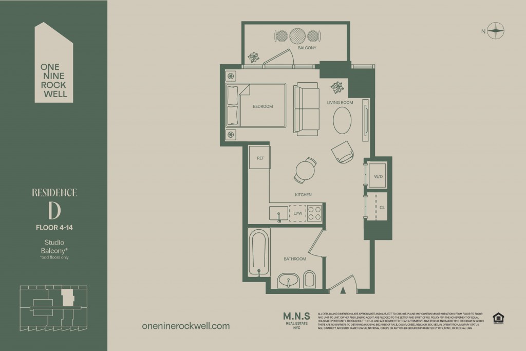 • WELCOME TO ONE NINE ROCKWELLExperience luxury living at One Nine Rockwell — a striking new residential tower where timeless design meets modern convenience in the heart of Fort Greene, Brooklyn.At One Nine Rockwell, every studio, one-bedroom, and two-bedroom residence is thoughtfully curated to feel both classic and contemporary. Featuring an abundance of private outdoor spaces, One Nine Rockwell offers a golden opportunity to enjoy fresh air and city views from the comfort of your living room. From the moment you step inside, you're welcomed into an atmosphere of understated luxury, where premium finishes and natural materials elevate every detail.Interior Finishes include:Floor-to-ceiling windowsIn-residence washer & dryerStainless steel appliancesFully paneled dishwasherIndividually controlled heating and coolingCaesarstone kitchen countertopsLarge format bathroom tilesPrivate outdoor balconies*(in most residences)Sweeping Manhattan views*(in select residences)Amenities include:27th Floor Sky Lounge & DeckPart-time Attended LobbyResident LoungeLibrary & Co-Working SuiteEvent Space with Outdoor TerraceFitness CenterYoga StudioPet SpaBike StoragePersonal Storage CagesExperience life where Fort Greene’s heritage and Downtown Brooklyn’s energy converge. Wake to the character of landmark brownstones and the calm of tree-lined streets, then step into a neighborhood alive with café culture, creative boutiques, and world-class arts. From the greenery of Fort Greene Park to the cultural icons of BAM and Barclays Center, every corner invites discovery.*Price shown is Base Rent. Residents are required to pay: At Application: Application Fee ($20.00/leaseholder, nonrefundable); At Move-in: Security Deposit (Refundable) (100%/unit); Monthly: Community Amenity Fee ($75.00/leaseholder); Electric-Submetered. Please visit the property website for a full list of all optional and situational fees. Floor plans are artist’s rendering. All dimensions are approximate. Actual product and specifications may vary in dimension or detail. Not all features are available in every rental home. Please see a representative for details.