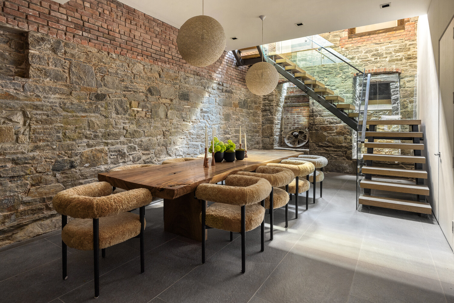 Originally constructed in 1839 and once owned by famed composer John Philip Sousa , this 22.33-foot-wide townhouse sits on a tranquil, Village block and has been meticulously reimagined through a full architectural restoration. Historic brick and original stone are artfully paired with glass, steel, and warm wood to achieve a modern yet timeless aesthetic.