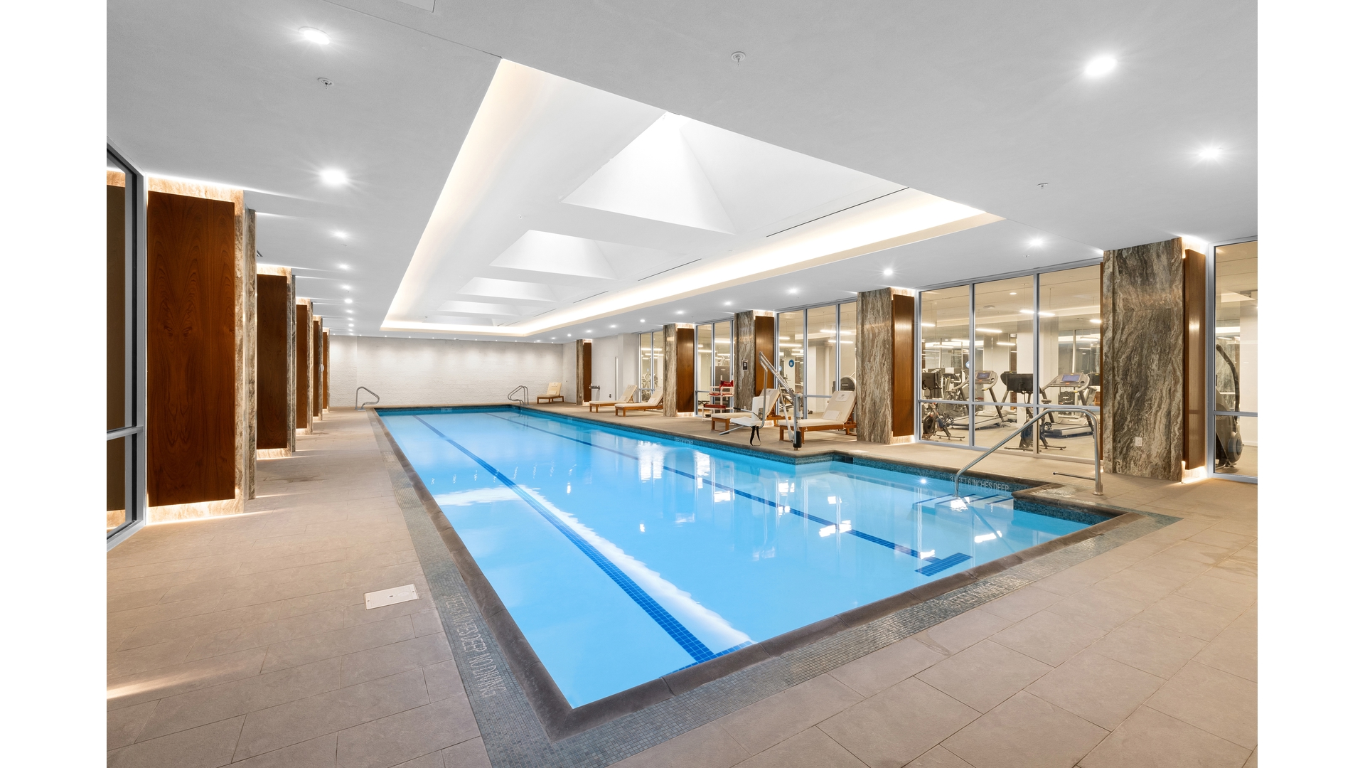 The exclusive residents' club, spans 18,000 square feet and offers an array of wellness and lifestyle amenities, including a 75-foot lap pool, state-of-the-art fitness center, sauna and steam rooms, yoga studio, children's playroom, lounge, and screening room.