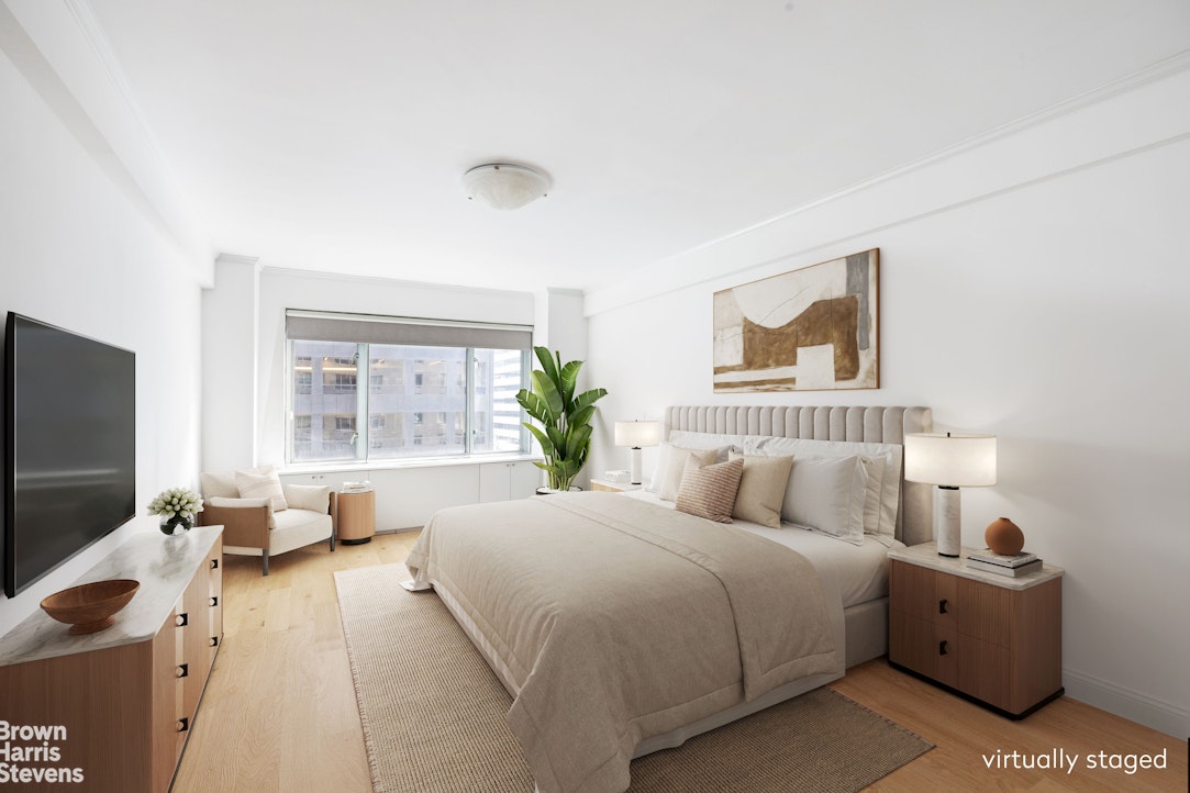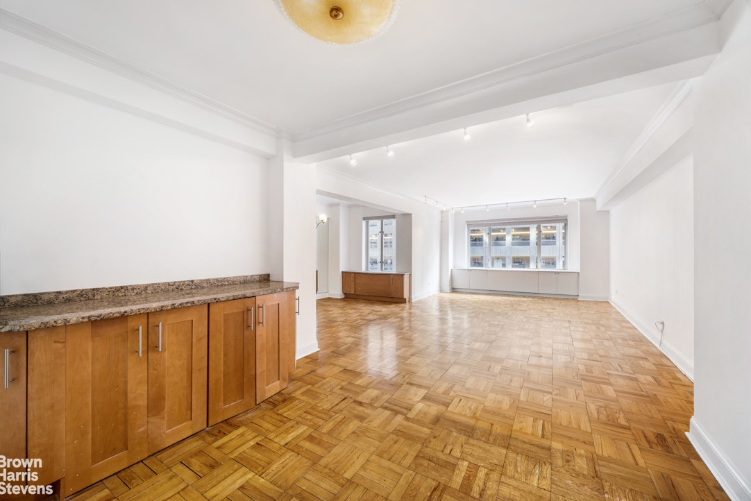 Apartment 7K at 200 East 57th Street is a spacious two-bedroom, two-bathroom home in a prime, full-service co-op. A gracious entry foyer opens into an expansive 31-foot living and entertaining space, enhanced by oversized south-facing windows that bring in excellent natural light.