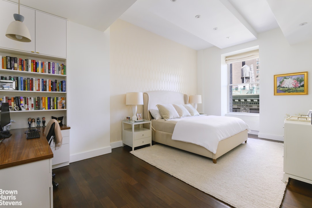 • Located on Madison Square Park, this beautiful luxury loft is in move in condition. Apartment 11F is a generously-sized three bedroom, 3.5 bath, plus home office/den with lovely northern views of beaux arts cornices and open sky. The layout is ideal, with both gracious entertaining space and separation of primary suite and guest bedrooms for privacy. Details abound from Brazilian walnut floors to soaring 12-foot ceilings, and oversized windows. The sprawling living room features oversized windows, plenty of room for dining, and thoughtfully designed custom built in bookcases. The cook's open kitchen is ideal for entertaining with generously scaled quartzite counters, a Subzero refrigerator, a dual-zone wine refrigerator, a six burner vented Viking stove, a Grohe pot filler, Miele espresso/cappuccino machine, Miele dishwasher, Miele microwave, convection oven & warming drawer. A massive pantry closet compliments the kitchen storage.
