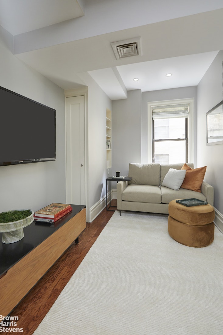 Residents enjoy a full-service experience, including a 24-hour attended lobby, resident manager, and lobby attendants. Amenities include a modern fitness center, central laundry facilities, and bicycle storage. This is a pet-friendly co-op that permits 50% financing and requires a 2% flip tax, payable by the purchaser. A coveted, oversized storage unit is available for separate purchase.