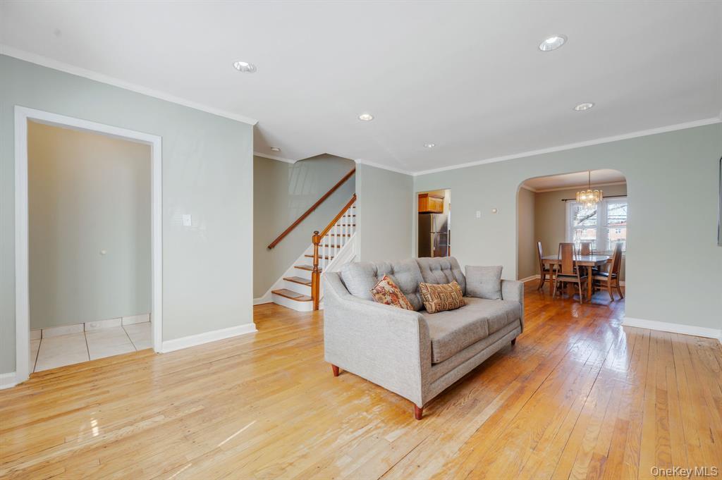 Move right into this beautiful, sun filled 3-bedroom, 2-bath brick home. The first floor features a bright and inviting living room, a formal dining room, and a nicely sized kitchen with brand new appliances. Upstairs, you’ll find three well-proportioned bedrooms and a full bath. The lower level offers versatile space perfect for a home office, gym, or playroom along with a full bath and laundry area. A separate exterior entrance provides access to the attached garage, basement and a 3–4 car driveway. Additional highlights include a new roof, new appliances, a new boiler and water heater, and hardwood floors throughout. Ideally located near NYC transportation, dining, schools and hospital.