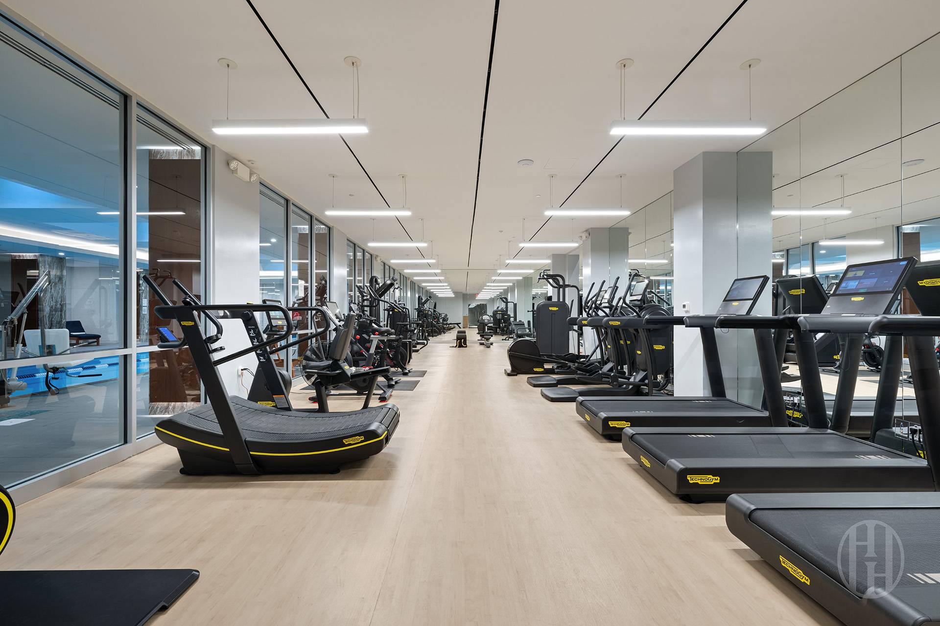 Residents of 215 East 19th Street enjoy a full-service lifestyle with an impressive array of amenities. A private, tree-lined driveway leads to a beautifully appointed lobby with rich wood detailing and a cozy fireplace. The building also offers on-site parking and private storage. At the center of the Gramercy Square community is a sprawling 20,000-square-foot landscaped garden designed by M. Paul Friedberg & Partners, featuring lush plantings, winding paths, and tranquil seating areas. The exclusive Gramercy Club spans 18,000 square feet and includes a 75-foot indoor pool, fitness center, steam and sauna rooms, yoga studio, golf simulator, children’s playroom, screening room, and a sophisticated residents’ lounge.
