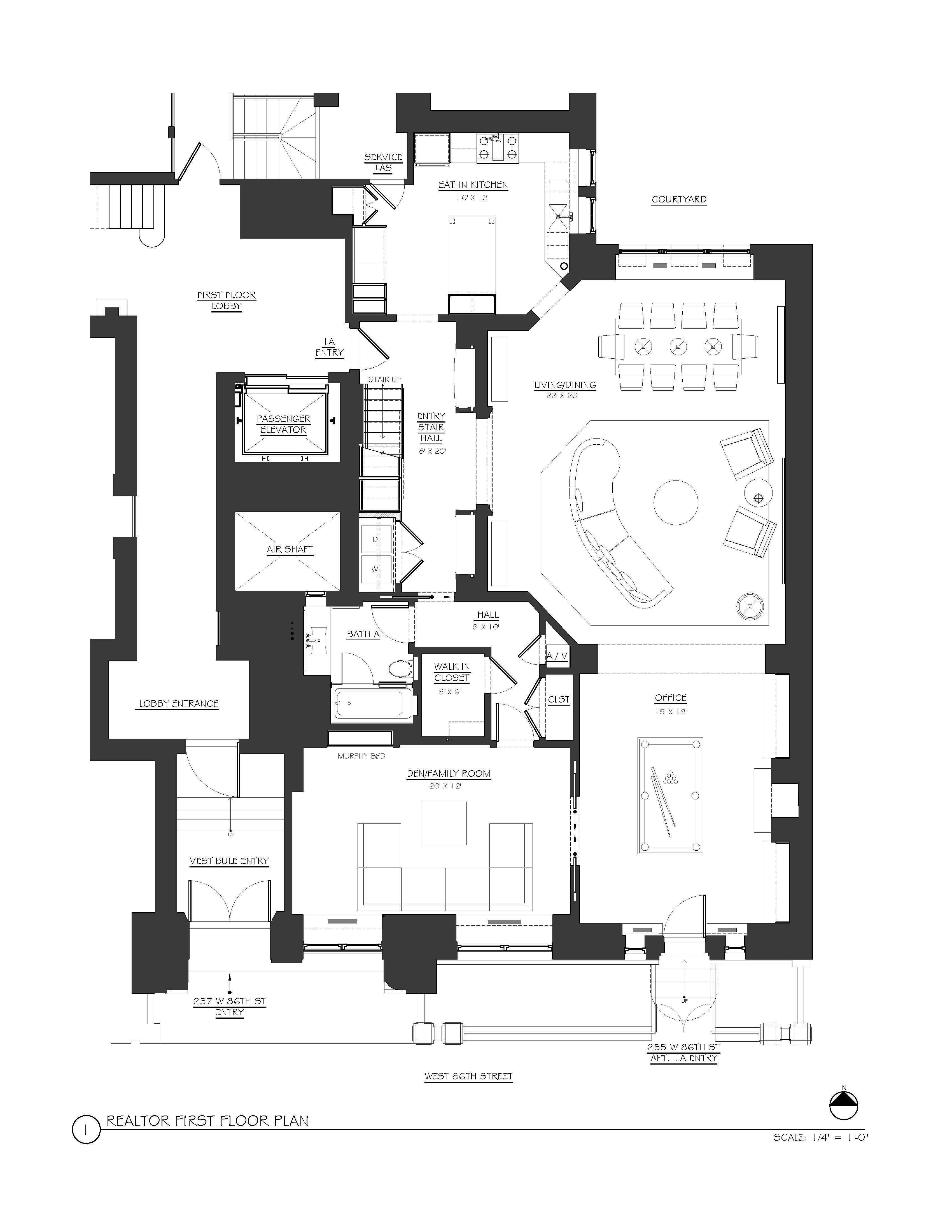 Architectural Granduer; From Legendary Ballet Studio to an Architect’s Upper West Side Family Home A Unique Offering of a Gut-Renovated, Three Bedroom Designer Duplex Experience peaceful, refined living in this impeccably designed and meticulously renovated three bedroom, three bath home at 257 West 86th Street. Approximately 2,800sf, this re-imagined duplex transcends the definition of "turn-key," fusing the highest level of architectural skill, sophisticated taste, the highest standards of craftsmanship, dramatic scale, and pre-war details that are original to the building, and maintained with integrity. The Residence: Apartment 1/2A was the former live/work Dance Studio belonging to ballet legend, Raoul Gelabert. The apartment was brought down to its shell and rebuilt by the architect and owner, with intention, detail, and love, spanning a multiple year project. The well-lit, double-height, 20-foot ceiling Great Room creates an immediate sense of drama and scale as you enter the apartment. The large, custom eat-in kitchen is a showpiece, featuring custom cabinetry, a generous peninsula table, premium integrated appliances by Wolff, Dacor, and Cove, and finally lots of counter top surface area designed to provide workspace for the culinary enthusiast, the frequent host, or for everyday living. The custom cabinetry is in high gloss lacquer, with metal frames that surround the doors and drawers throughout the kitchen; practical to protect these highly used components, avoiding chipping of the edges. Beyond the great room, an office gallery with custom cabinetry and a decorative fireplace does double duty as both a work space for two and a recreation space for many. Off of the office, a dedicated media/den has the versatility to also be a guest room (fourth bedroom) with a built-in murphy bed. The first floor is complete with three closets, one of which is a large walk-in closet, and a luxurious full bath with tiles from Ann Sacks, cabinetry cabinets, and heated floors. The flexible floor plan currently offers three bedrooms and two full baths on the second floor, all bedrooms basking in Southern light. And finally, the entry foyer is an experience in itself with custom natural oak cabinetry, the stair wall design by Fresco Decorative Arts, the upholstered bench and polygons in Ultrasuede from Kravit and the sculptural glass staircase by Prime Glass. Two unique and cleverly hidden closets pull out from under the stairs for coat, hat, and shoe storage. The practical luxury of this home prioritizes utility and functionality without sacrificing style, boasting an in-unit washer/dryer closet with shelving, and an abundance of closets and built-in storage, where each closet is outfitted with lighting, shelving and drawers for maximum utility and easy access and visibility. The residence has central A/C with multiple zones to accommodate everyone's temperature preference. Baths are equipped with hidden storage drawers that are outfitted with designated electrical outlets so your bathroom countertops can remain appliance free. All the windows have been replaced from the original. The Building & Lifestyle: Situated in a premier FULL-SERVICE cooperative, residents enjoy a 24-hour doorman, a live-in superintendent, a fitness center, and a landscaped roof deck. A well run co-op whose Local Law 11 was just completed. Positioned between Riverside and Central Parks, the location offers immediate access to the neighborhood’s most celebrated dining, cultural landmarks, and the many options for transportation. Pet-friendly and perfectly executed, this duplex represents a rare opportunity to secure a truly standout residence in the heart of the Upper West Side. Apartment Features: Approx 2,800SF High Ceilings Central A/C Washer/Dryer in unit Building Features: Full time Doorman Gym Storage Laundry Pet Friendly