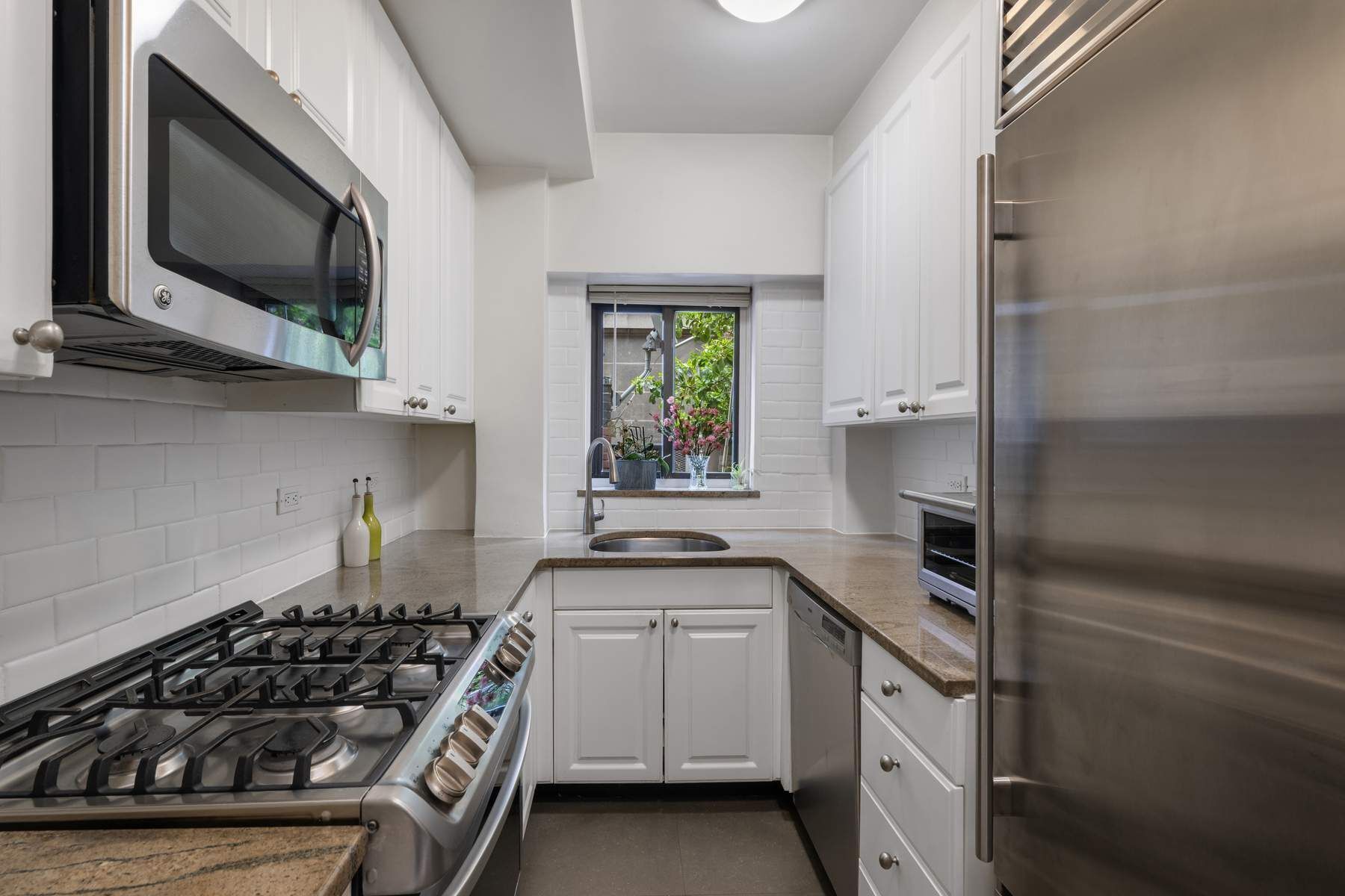 • Perfectly positioned between Madison and Park Avenues, and nestled between the Morgan Library and the Union League Club, this standout residence pairs modern interiors with two rare private setback terraces that define this spacious home. The larger terrace is a true outdoor living room—generously sized and beautifully planted with eight containers, ideal for entertaining or relaxing under open sky. A second, more intimate terrace off the primary bedroom offers a quiet, private retreat. Facing North and East, the expansive, bright living room features multiple windows and a dining area with chandelier. The windowed kitchen is well-appointed with granite countertops and top line stainless-steel appliances including a new LG gas cooktop and electric oven, Sub-Zero refrigerator, GE Microwave and Bosch dishwasher. There is also a stainless-steel sink with a new faucet and Bosch Washer/Dryer. Two large bedrooms offer abundant storage, including a huge custom, California Closets, walk-in, in the primary. Two updated baths, new moldings, satin nickel hardware, and updated lighting complete the home. This exceptional residence offers unparalleled convenience—just moments from Grand Central Station and Bryant Park. The Morgan Park Condominium, a distinguished 13-story Emory Roth building with 104 residences, provides a full-time doorman along with new key fob and surveillance camera system. There is a laundry room, and private storage for a small monthly rate of $95 per month based on availability. The building is pet-friendly and permits co-purchasing, pied-à-terres and rentals. Residents also benefit from two elevators and recently refreshed staircases and hallways.