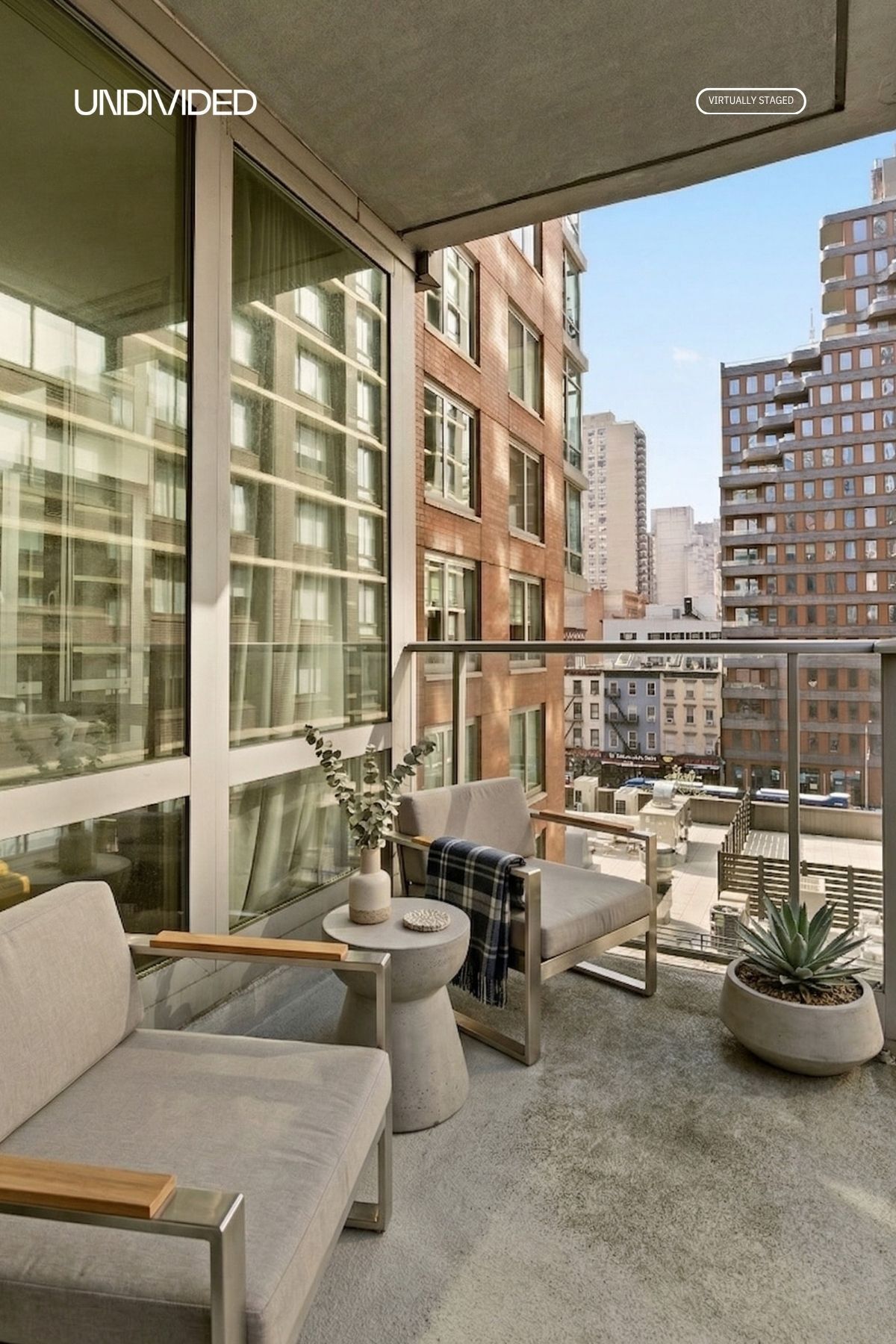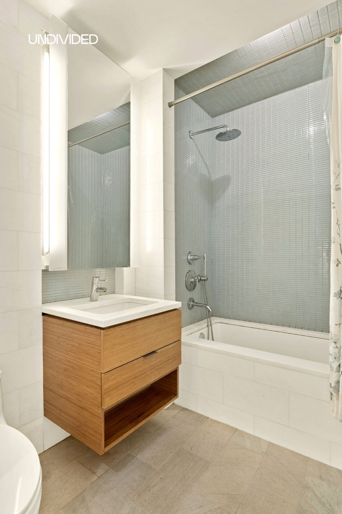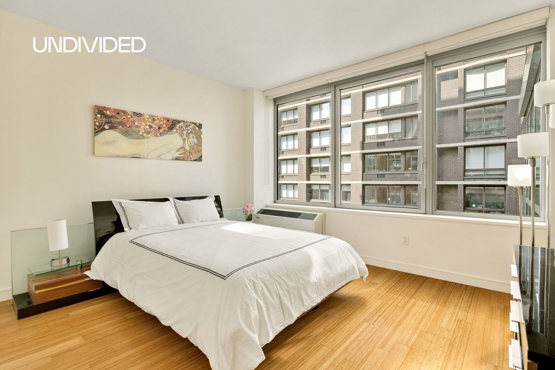 Welcome to Unit 6A, a pristine 886 square foot corner one-bedroom that has been owned for 15 years but used only sparingly, it truly lives like a brand-new apartment. This rare opportunity to own a virtually untouched home is complemented by north and west-facing exposures and floor-to-ceiling windows that flood the space with natural light. The separate kitchen and dining room embrace sleek modern aesthetics of the highest quality, featuring state-of-the-art Bosch appliances. The contemporary living space includes climate control heat and A/C, bamboo floors, kitchen custom cabinetry, glass countertops, and an energy-efficient Bosch stackable washer/dryer, all in like-new condition. The bathroom interiors feature Bianco Dolomiti marble walls, sparkling quartzite tile floors, beautiful glass mosaic tiles, and Kohler and Grohe fixtures. A private storage cage in the basement is included in the sale. All furniture is available for negotiation. Residents of 303 E 33rd gain exclusive access to amenities that include a 24-hour concierge, resident lounge, and an entertainment area. Enjoy the serenity of the exterior garden courtyard showcasing a working fireplace. In the basement is a bike room, a separate private storage room, a fitness room, and a laundry room. The crown jewel is the 5,000 SF rooftop garden on the 12th floor, perfect for lounging on the sun deck and catching views of the East River, complete with a barbecue grill and mini-golf area. Perched at the junction of Kips Bay and Murray Hill, 303 East 33rd is one block from NYU Langone, with Bellevue and the VA Medical Center moments away, as well as the 6 train, Grand Central, Midtown Tunnel, and FDR Drive, ideal for getting anywhere in or out of the city with ease. Just moments from Trader Joe's, Fairway, AMC Kips Bay, and the area's best restaurants and cafes, this home offers the best of Manhattan living with a sustainable edge.