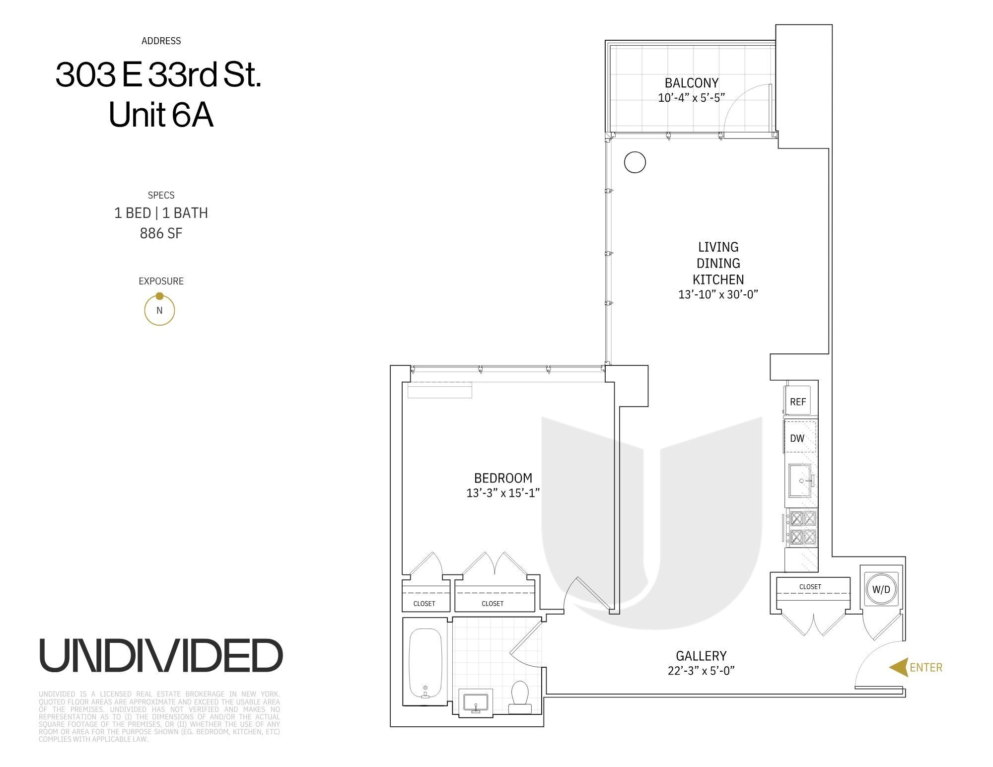 • Welcome to Unit 6A, a pristine 886 square foot corner one-bedroom that has been owned for 15 years but used only sparingly, it truly lives like a brand-new apartment. This rare opportunity to own a virtually untouched home is complemented by north and west-facing exposures and floor-to-ceiling windows that flood the space with natural light. The separate kitchen and dining room embrace sleek modern aesthetics of the highest quality, featuring state-of-the-art Bosch appliances. The contemporary living space includes climate control heat and A/C, bamboo floors, kitchen custom cabinetry, glass countertops, and an energy-efficient Bosch stackable washer/dryer, all in like-new condition. The bathroom interiors feature Bianco Dolomiti marble walls, sparkling quartzite tile floors, beautiful glass mosaic tiles, and Kohler and Grohe fixtures. A private storage cage in the basement is included in the sale. All furniture is available for negotiation. Residents of 303 E 33rd gain exclusive access to amenities that include a 24-hour concierge, resident lounge, and an entertainment area. Enjoy the serenity of the exterior garden courtyard showcasing a working fireplace. In the basement is a bike room, a separate private storage room, a fitness room, and a laundry room. The crown jewel is the 5,000 SF rooftop garden on the 12th floor, perfect for lounging on the sun deck and catching views of the East River, complete with a barbecue grill and mini-golf area. Perched at the junction of Kips Bay and Murray Hill, 303 East 33rd is one block from NYU Langone, with Bellevue and the VA Medical Center moments away, as well as the 6 train, Grand Central, Midtown Tunnel, and FDR Drive, ideal for getting anywhere in or out of the city with ease. Just moments from Trader Joe's, Fairway, AMC Kips Bay, and the area's best restaurants and cafes, this home offers the best of Manhattan living with a sustainable edge.