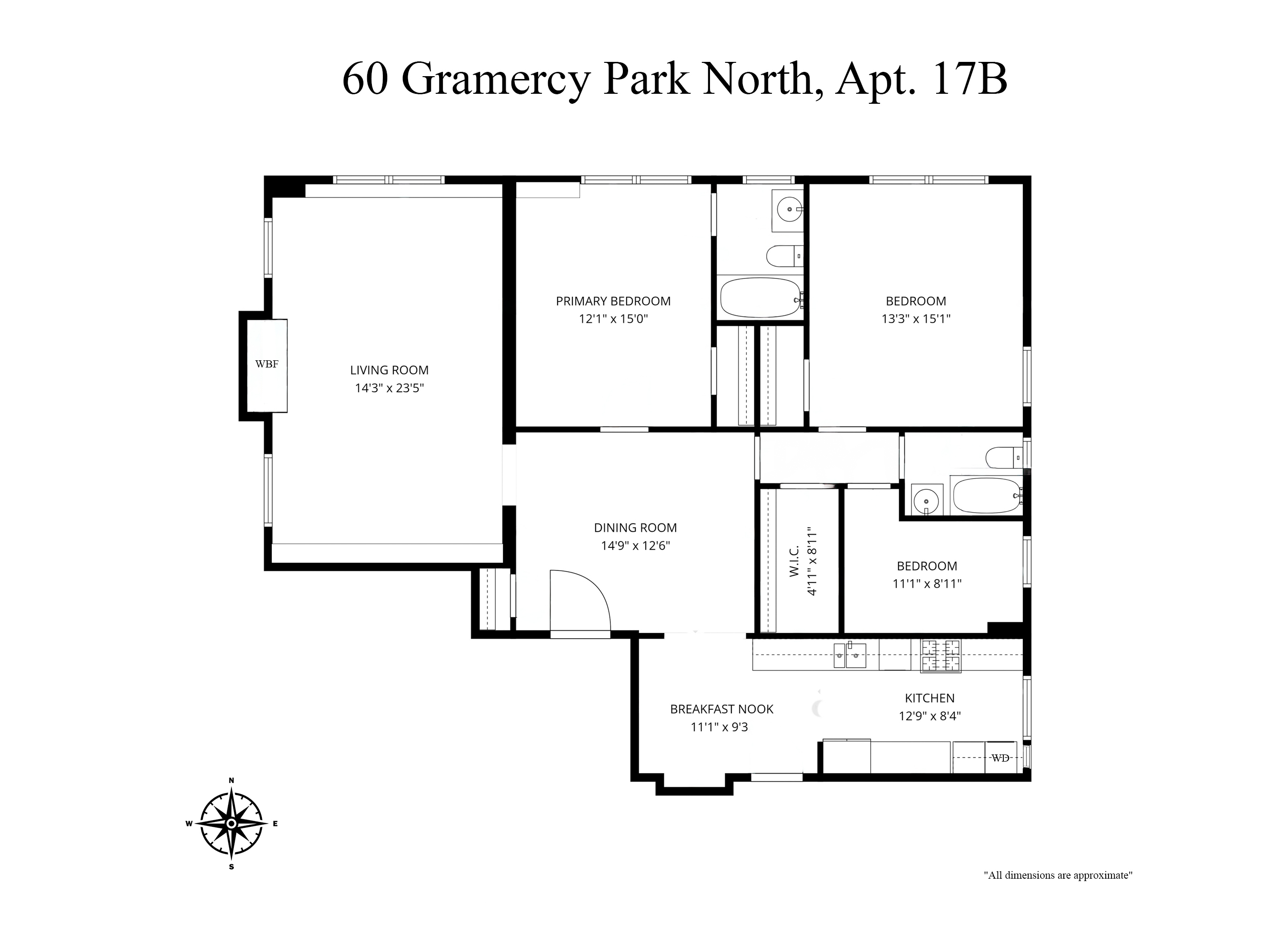 • Key to Gramercy Park. Stunning, fully renovated prewar, high floor, 3 bedroom at 60 Gramercy Park North the premier building on Gramercy Park. An apartment with a gracious flow, enter into an expansive foyer which serves at an ideal dining room before heading through the arch to the bright, corner living room with woodburning fireplace and open views to the west; perfect for entertaining or for a quiet, cozy evening by the fire with a book from the custom millwork creating an elegant wall of books. There are only five apartments with this coveted layout in the building apartment 17B being the highest floor. The large windowed eat-in chef's kitchen has Subzero, Wolf and Miele appliances. Side by side washer/dryer with work area above. Abundant storage. Two large bedrooms with two renovated windowed marble baths a large walk-in closet and a smaller 3rd bedroom complete this perfect apartment. Original hardwood floors and custom cabinetry throughout. The apartment has additional storage in the building. Originally designed by Emery Roth in 1928, 60 Gramercy Park North features a full-time door person, live-in resident manager, gym, storage, bike room, laundry and a charming, landscaped courtyard located off the lobby. Residents are provided keys to bucolic Gramercy Park, Manhattan's only private park encircled by elegant townhomes, tree-lined streets and landmarks such as the National Arts Club and the Player's Club. This serene neighborhood is perfectly positioned and incredibly convenient. Transportation (4, 5, 6, N, R, W and L subway at Union Square), the Farmer's Market, Madison Square Park, and a plethora of shopping, dining and cultural offerings are moments away. Pied a terre and pet friendly with board approval.