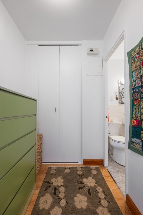 Plenty of White Kitchen Cabinets, stainless steel appliances, dishwasher. Butcher Block counters and breakfast bar. Decorative backsplash. New wood floors. Spacious dressing area. Large closets. Bathroom is in great condition. Murphy bed.