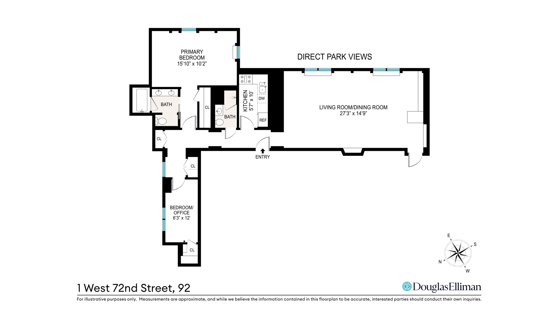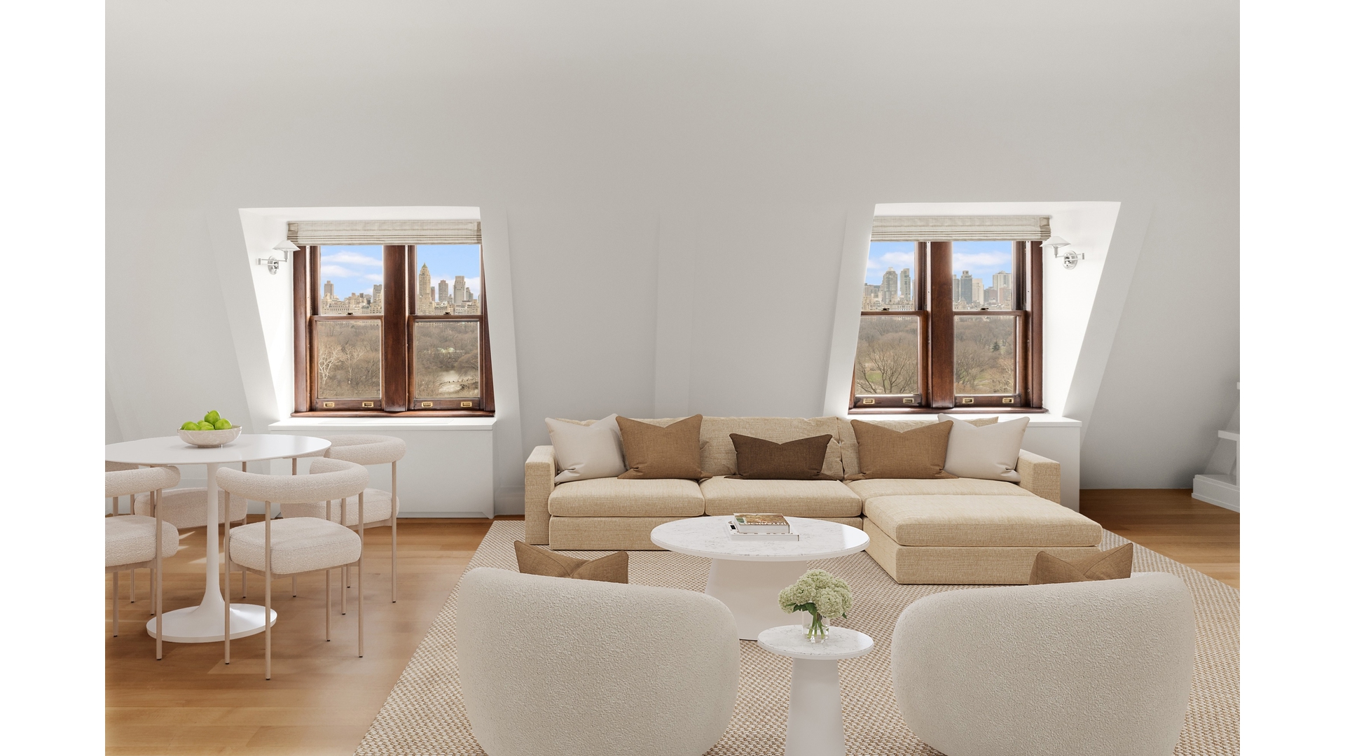 Perched on the top floor, this exceptional two-bedroom, two-bathroom residence captures breathtaking, unobstructed direct views of Central Park from the living/dining space and primary suite, a vantage point few homes can claim. The large living /dining room forms the heart of the home. Bathed in natural light, this room frames sweeping park vistas that transform with the seasons. The primary bedroom, (which has an ensuite bath) also overlooking the park, offers a serene retreat high above the city. A second bedroom/ office and second full bath provide flexibility for guests, or family.