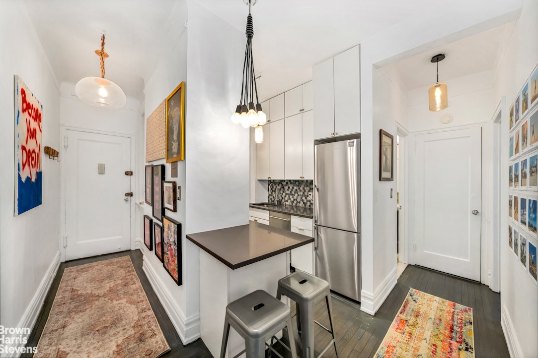With high ceilings throughout, and modern upgrades, you can make this spacious home your own respite. You enter a quiet apartment 7G into a graceful foyer leading to the grand living room. The doorframes and wall moldings bring you back to that special time of the turn of the century. The updated windowed kitchen is perfect for making healthy meals. There is a linen closet between the windowed bathroom and the large bedroom. The bedroom has two windows, a closet, and wall of built-in storage--yet still leaving enough room for a king-sized bed. This is ideal for an artist, performer, Broadway aficionado, or musician who is seeking a peaceful environment at the end of their night and tranquility during the day.