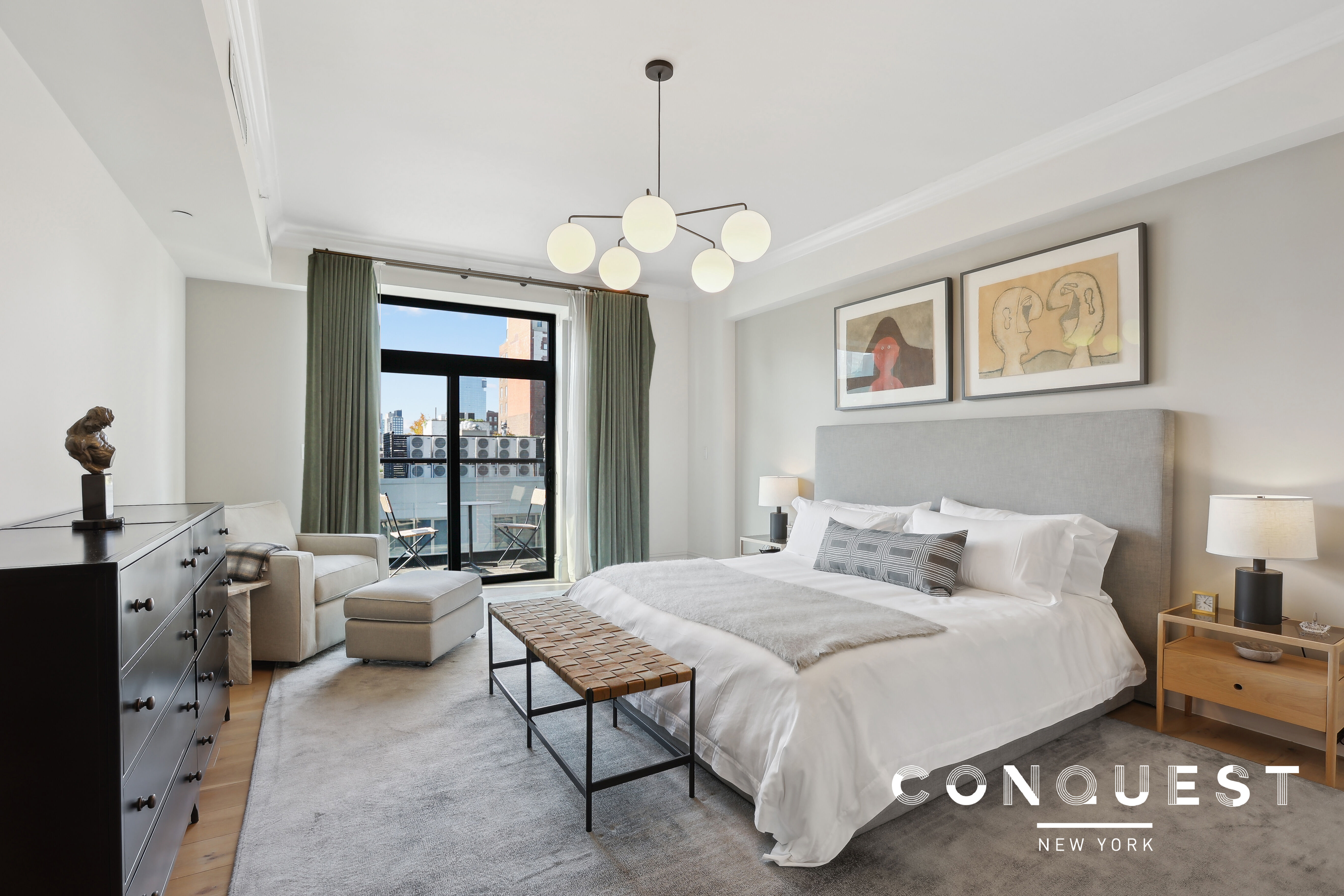 The Penthouse at 199 Mott is a luxurious full-floor 3 bedroom, 3 bathroom apartment with 4 exposures and views stretching from the Empire State Building to the Freedom Tower and a massive 30' × 50' private rooftop terrace that is excellent for entertaining. The keyed elevator entrance opens into nearly 50 feet of entertaining space and includes a windowed library or media room off the main living space. The apartment is pre-wired for home automation and comes with a large deeded storage unit. The SieMatic Beaux-Arts kitchen is outfitted with a 6 burner range and double oven by Bertazzoni, a 48" refrigerator and full height wine refrigerator by Liebherr and a dishwasher, speed oven and washer dryer by Miele. The marble bathrooms feature beautiful 1900’s series fittings from LeFroy Brooks and the Master Bathroom has a free standing soaking tub. 199 Mott is a new construction full service condominium in the heart of Nolita. Elegant, sophisticated and timeless, 199 Mott blends romantic historical references with the most state of the art systems, appliances and amenities to bring you a collection of LEED Gold certified residences that don’t sacrifice warmth for modernity. While still very much a boutique building with only 11 apartments, 199 Mott offers a 24 hour doorman, round the clock concierge service and a landscaped rooftop terrace where you can soak up the sun or enjoy 360 views of the city lights.