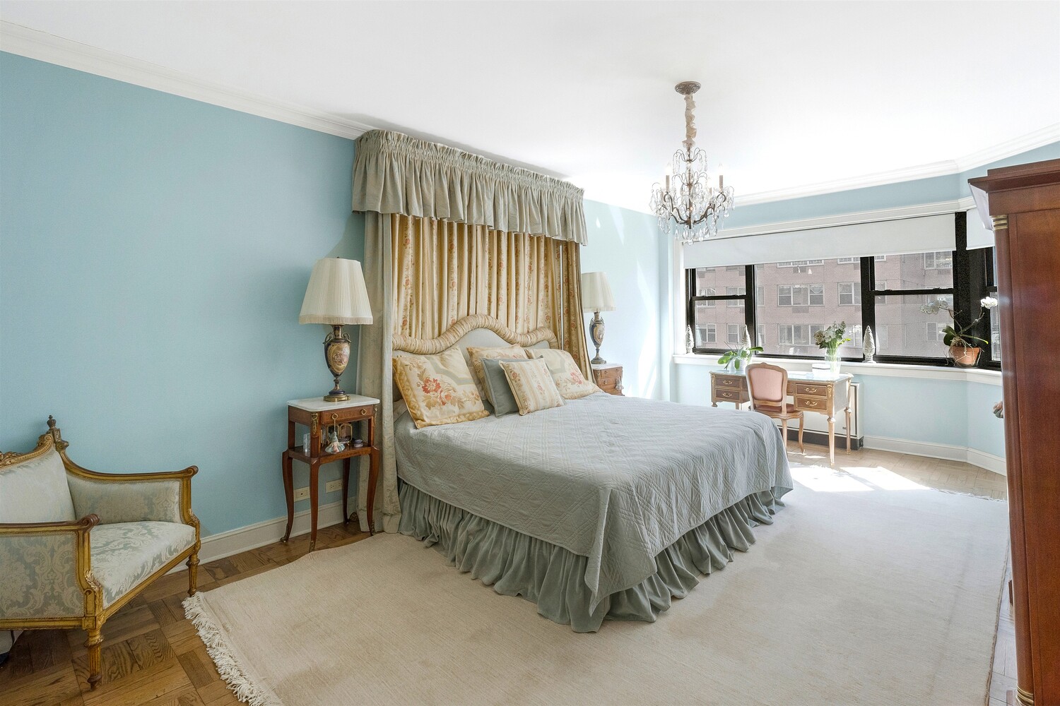 Next, ascend the stunning double height French mahogany staircase to the private quarters on the 11th floor. The east wing includes the primary suite, a sanctuary stretching 20 feet with two ample closets and a fabulous ensuite bath adorned with Sherle Wagner and Kohler fixtures. The enclosed west wing offers two well-appointed bedrooms with floor-to-ceiling built-ins and two full baths (one en-suite), a layout that ensures comfort and privacy.