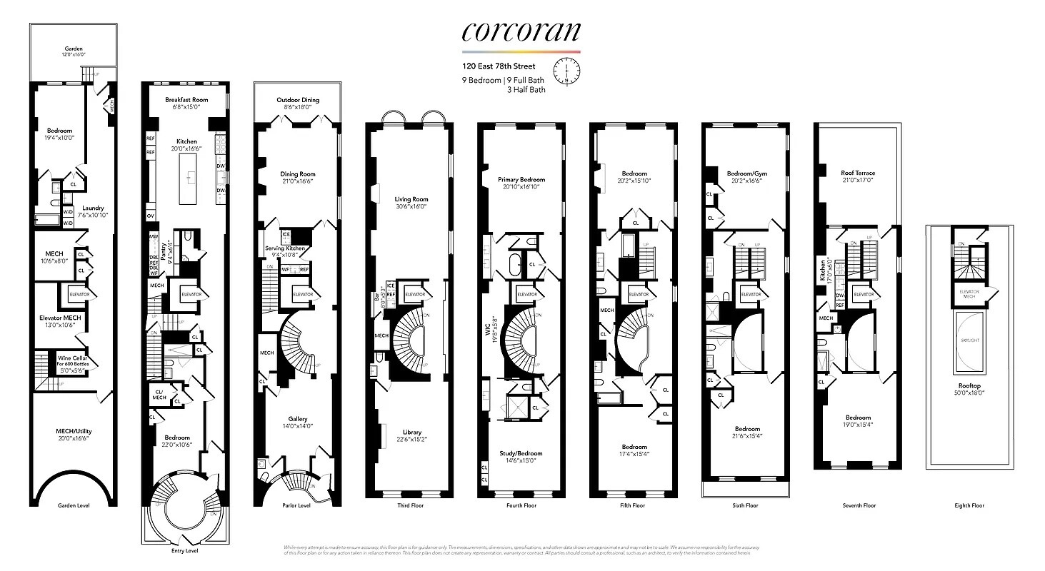 The townhouse totaling over 12,000 square feet features 9 bedrooms and 12 bathrooms, all outfitted with radiant heat floors, ensure comfort in every corner. The property's architectural integrity is highlighted by its magnificent scale and grandeur, with many principal rooms enjoying double exposures. Outdoor spaces are thoughtfully integrated, including a private garden off the first level, charming terraces off the dining room and 7th floor, and a sun-drenched roof deck. A chef's dream, the large kitchen features custom cabinetry, top-of-the-line stainless appliances, and a spacious dining area, making it perfect for both everyday living and grand entertaining. This property is ideal for an end user and/or investment property. Owner/Listing Agent.