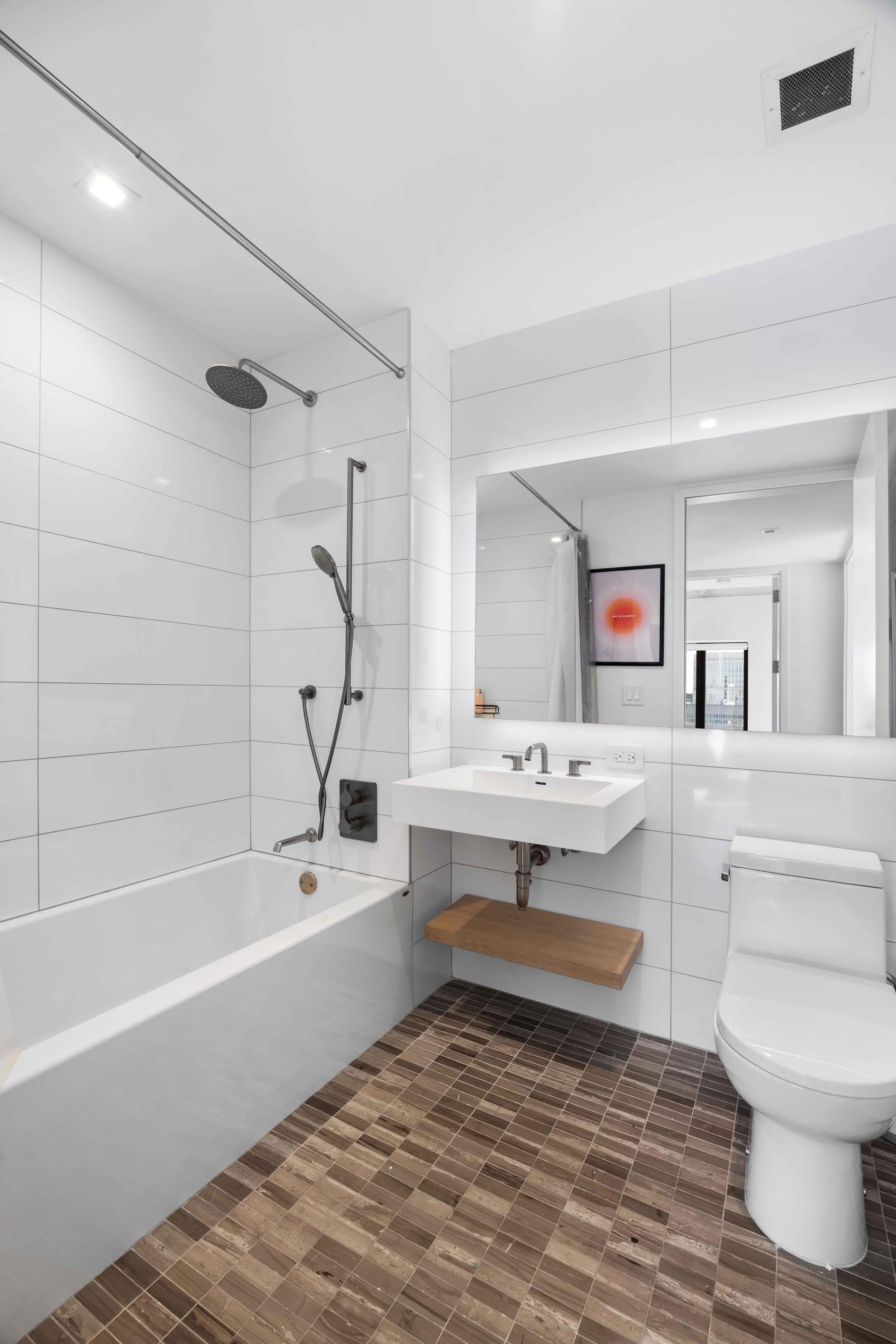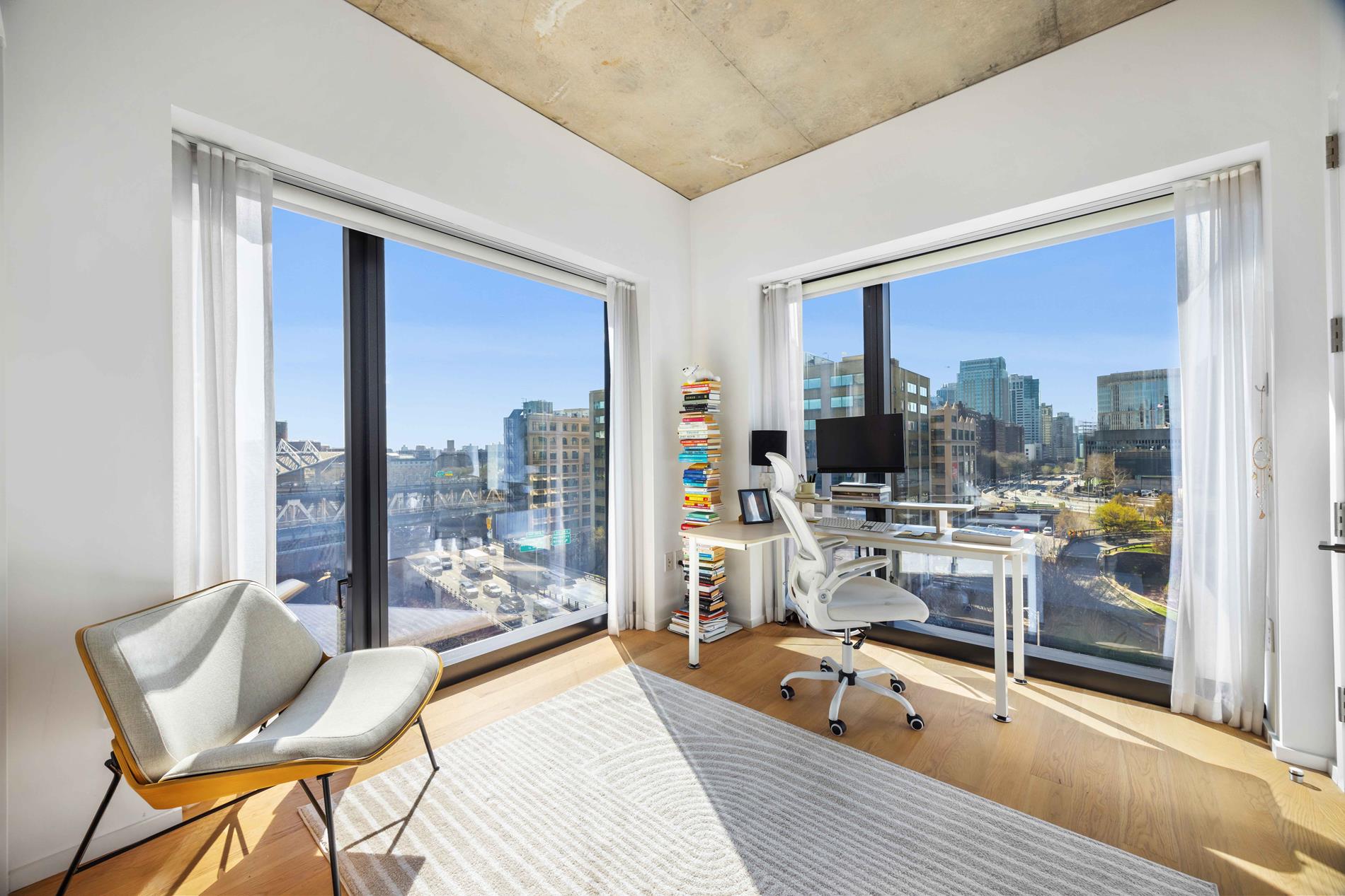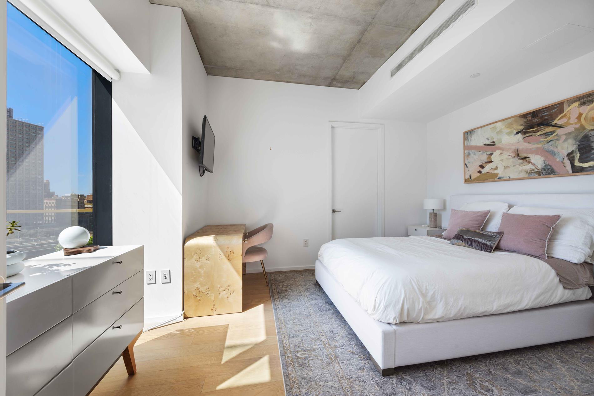 The primary suite offers a serene retreat with generous closet space and a beautifully appointed windowed en-suite bath. Two additional bedrooms provide flexibility for family, guests, or a home office. This home can easily be converted in a large 2- bedroom (alternate floor plan attached). Upgrades include electric shades and fully built out closets .