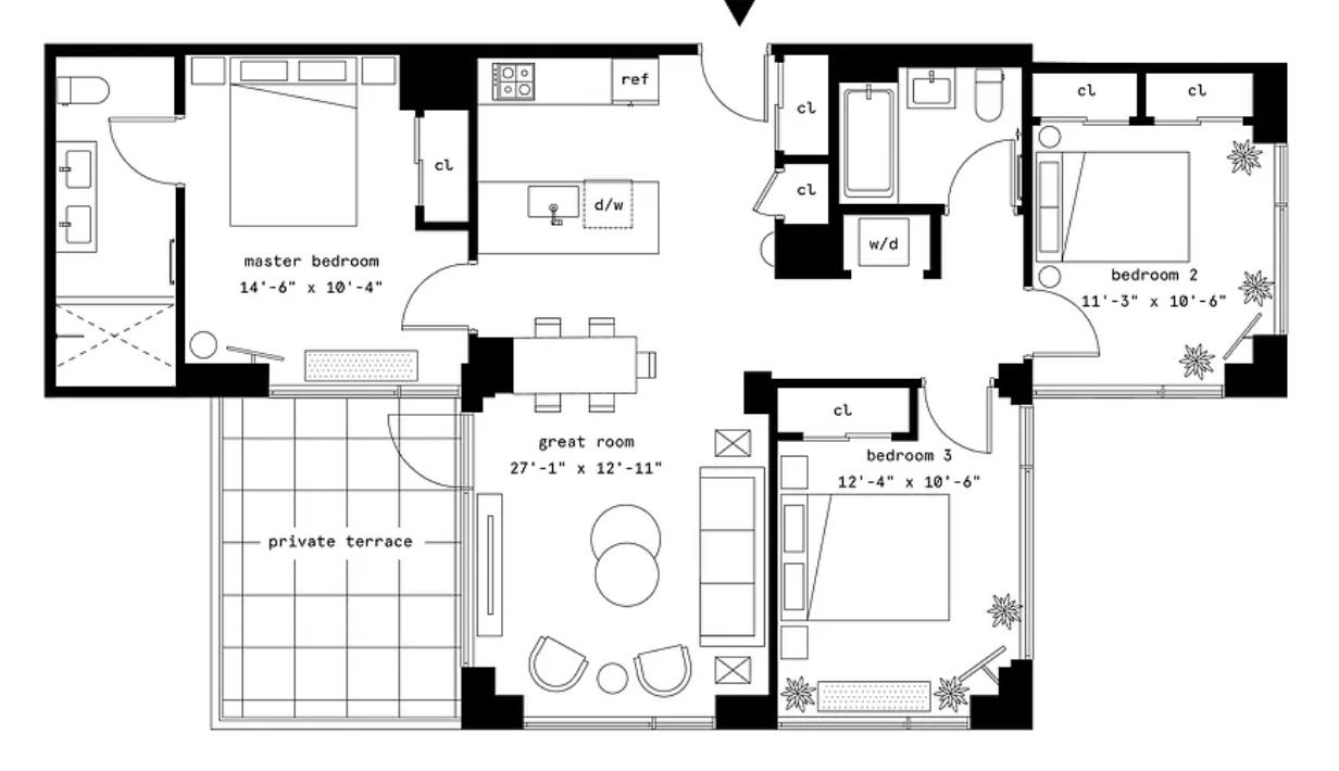 Penthouse perched atop a striking, award winning ODA development in DUMBO. This exceptional home offers the perfect blend of luxury, light, and iconic New York views. Currently configured as an expansive 3-bedroom, 2-bathroom residence completed with private terrace allowing for a seamless extension of your living room. Take in gorgeous sunsets and city views as this home is wrapped in South, East, and West, exposures. Gorgeous natural light floods the home throughout the day and delivers breathtaking views by night.