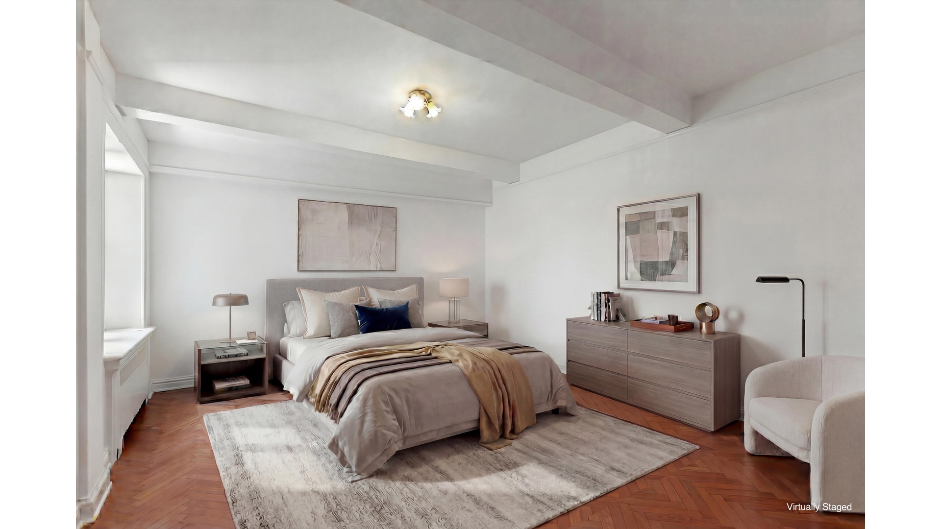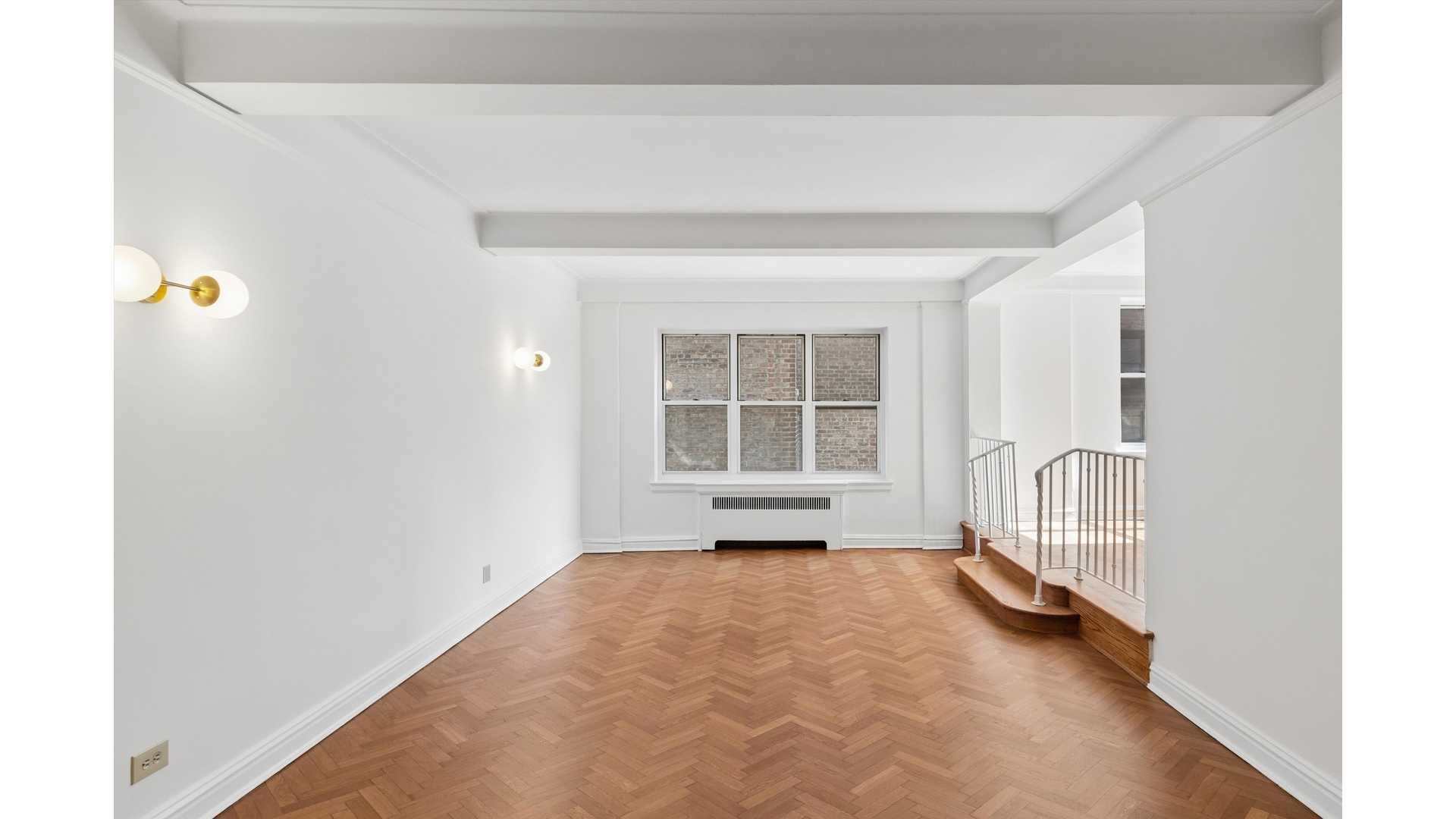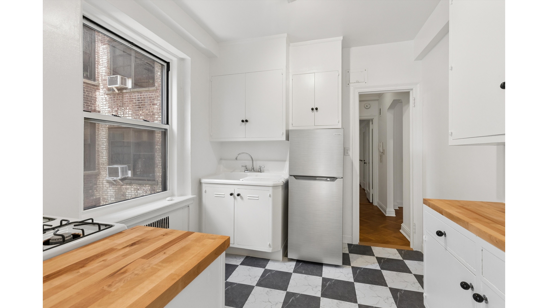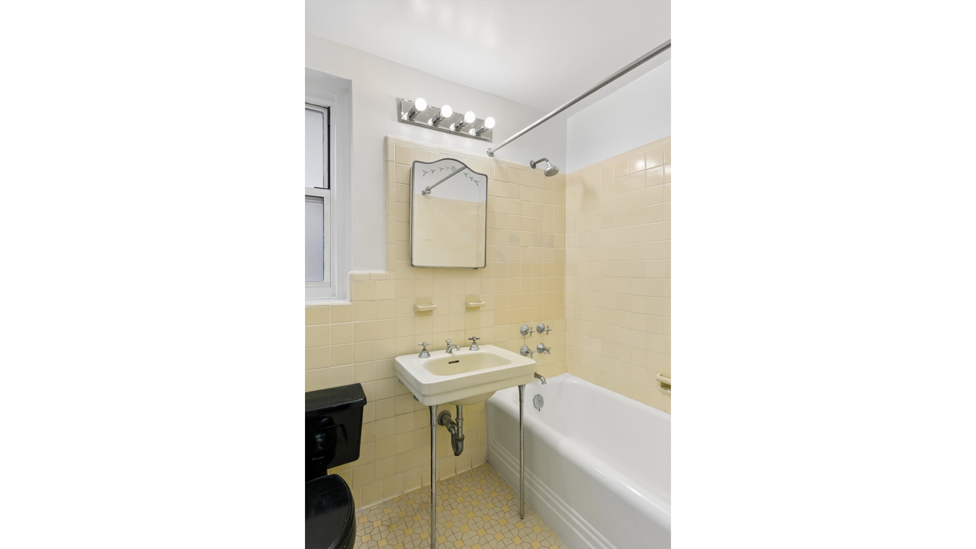 Apartment 4D is currently configured as a one-bedroom plus a bright and generously sized east-facing corner room that makes a lovely dining room or home office. It can be easily converted to a second bedroom to suit your needs. The large entry foyer with coat closet opens to the massive sunken living room. The primary bedroom fits a king sized bed with room to spare. It boasts three ample closets as well. The kitchen retains the original metal cabinets and extra-large enameled cast iron sink. If you have an eye for 1930's design, you'll love this kitchen! The bathroom has original sink, cabinet, and tiles with a reglazed cast iron bathtub.