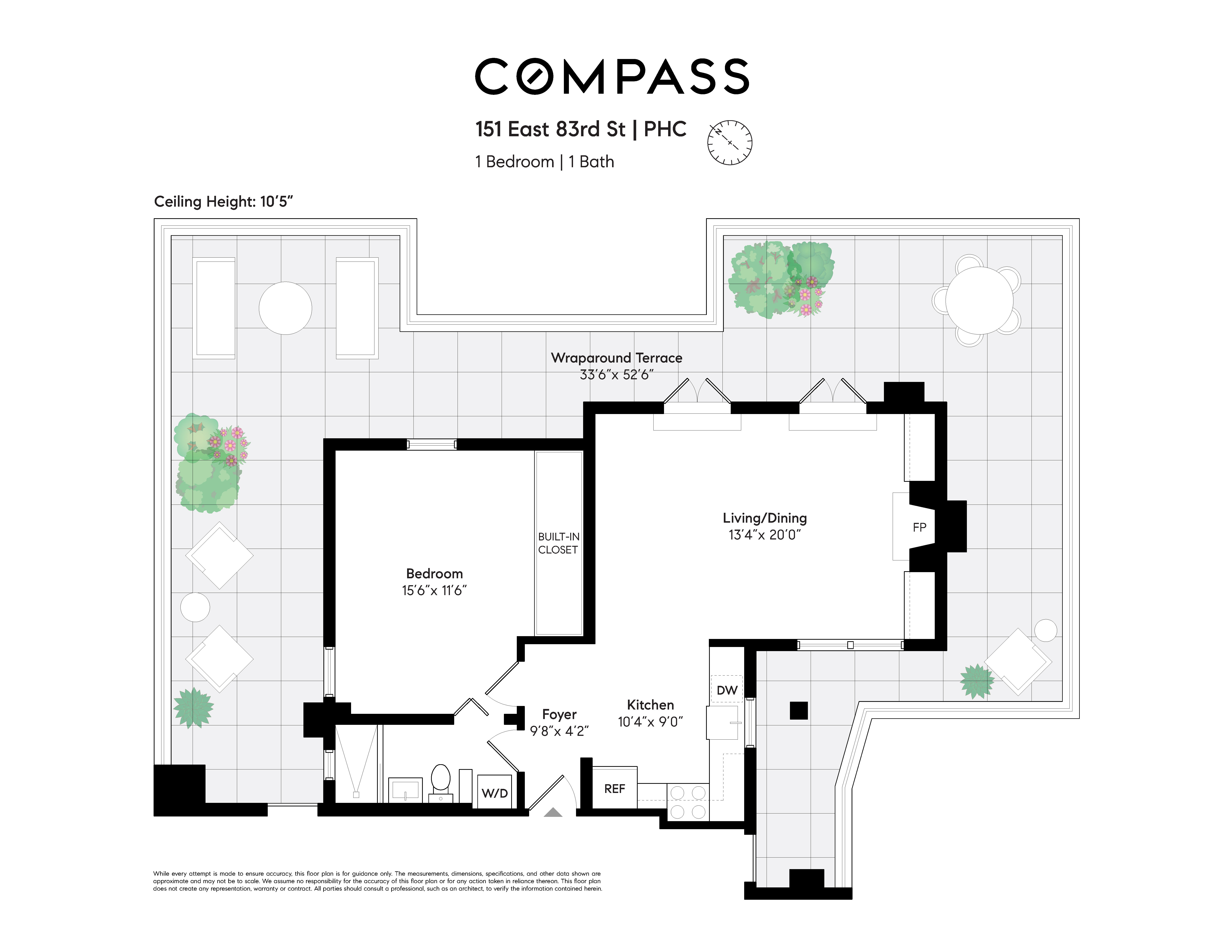 • Perched atop one of the Upper East Side’s most coveted corridors, PHC at 151 East 83rd Street is a true trophy penthouse. Bathed in natural light and defined by exceptional scale, this renovated one-bedroom lives far beyond its footprint—a rare “treehouse in the sky” with a wraparound terrace to rival the best of them. A gracious, well-proportioned layout unfolds into a beautifully scaled great room, where high ceilings and a wood-burning fireplace anchor the space, and multiple exposures create an airy, uplifting ambiance. Double French doors open seamlessly to the terrace, enhancing the home’s effortless indoor-outdoor flow. There is ample room for both dining and comfortable living, striking a thoughtful balance between elegance and everyday ease. The kitchen is a proper chef’s setup—refined, efficient, and built for real use—featuring a windowed sink with open city views. A windowed bathroom adds both charm and practicality, while the bedroom enjoys double exposures and excellent light throughout the day. A washer/dryer is thoughtfully tucked within the home, and discreet mini-split systems ensure year-round comfort without disrupting the apartment’s quiet, tranquil feel. But the true showstopper lies beyond. PHC is crowned by an extraordinary wraparound terrace, offering open skies and unobstructed exposures in nearly every direction. Completely private and not shared or connected to any neighboring outdoor space, it provides a rare sense of seclusion high above the city. Thoughtfully divided into multiple zones for dining, entertaining, gardening, or simply unwinding, the terrace elevates everyday living into something far more special. Opportunities to achieve this kind of seamless indoor-outdoor experience—particularly in a one-bedroom—are exceptionally rare. Set within an elegant Beaux-Arts cooperative, 151 East 83rd Street offers a 24-hour attended lobby (doorman by day, porter overnight), a landscaped garden, bike room, central laundry (in addition to the apartment’s in-unit washer/dryer), and additional storage (for a fee). Pets are welcome, and co-purchasing, gifting, and guarantors are permitted. Capital assessment of $235/month. Flip tax of 1.5% paid by purchaser. Positioned in the heart of the Upper East Side, 151 East 83rd Street offers effortless access to the very best of the neighborhood—just steps to Central Park and The Metropolitan Museum of Art, with convenient proximity to multiple subway lines including the Q and 4/5/6. Beloved neighborhood staples like Eli Zabar’s, along with an array of top restaurants, cafés, and boutiques, are right outside your door, making this a quintessential Upper East Side address.