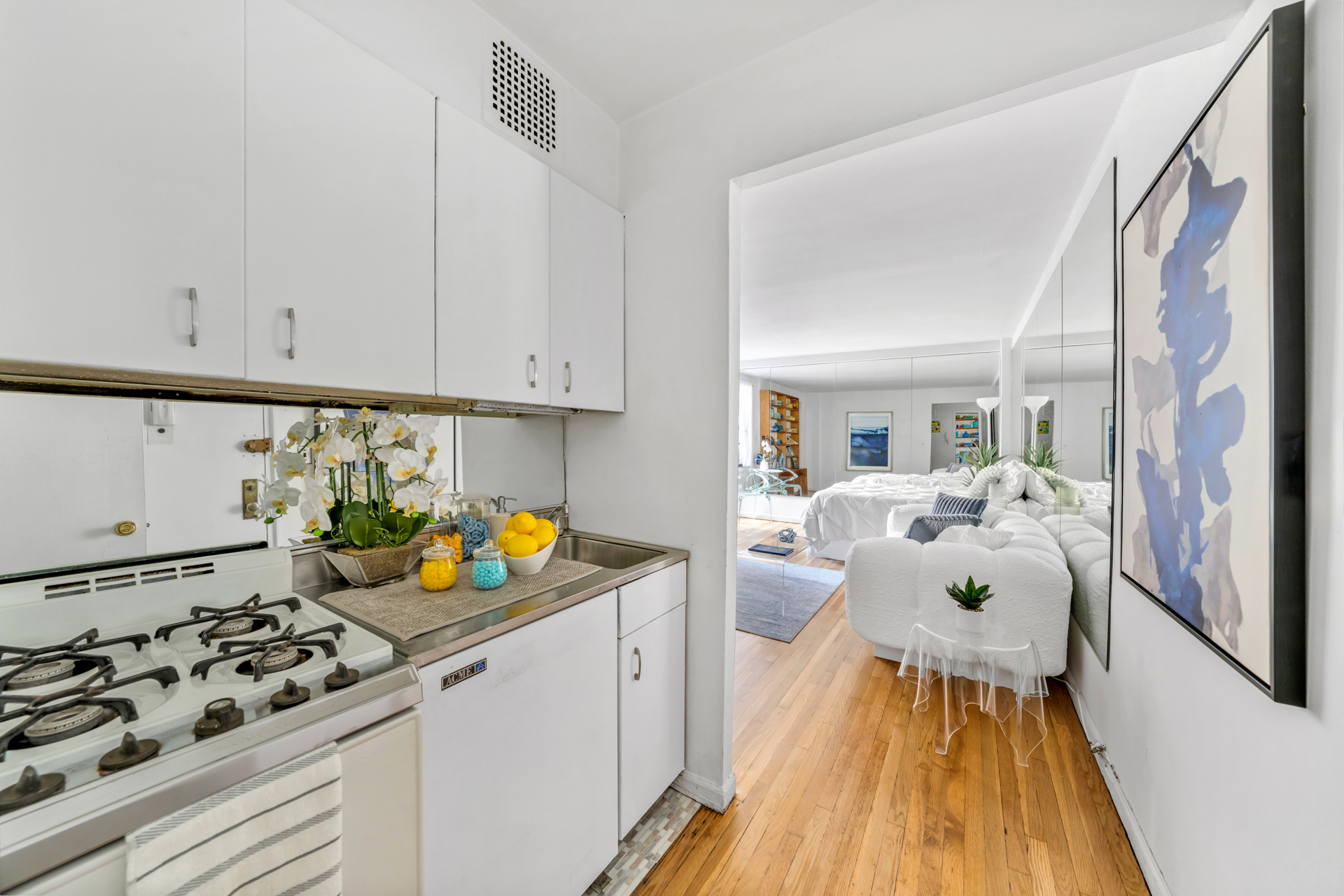 Why settle for a mere studio when you can have a home that feels like a true sanctuary? From the moment you enter, it is clear this isn't your typical layout. This residence pairs chic, intentional design with a warm, airy energy, beginning with a creative gallery kitchen that flows seamlessly into a spacious living area-an ideal setup for both quiet nights in and effortless entertaining. Tucked away for maximum privacy, the designated sleeping alcove features a bright South-facing window that bathes the apartment in natural light throughout the day. Storage is never an issue here; the home boasts three generous closets and a rare, large windowed bathroom that provides a bright, spa-like atmosphere.