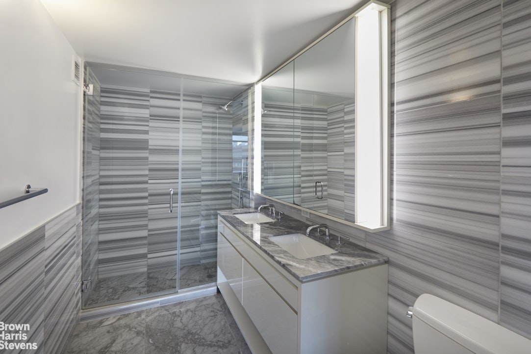 Primary Bedroom: The spacious primary bedroom has plenty of room for a king-size bed and features two custom closets and a large en-suite bathroom boasting twin vanity sinks and a generously sized stall shower. Luxury and convenience blend seamlessly in this private sanctuary. As an added bonus, you can see the Empire State Building with its colorful light display in the evening.