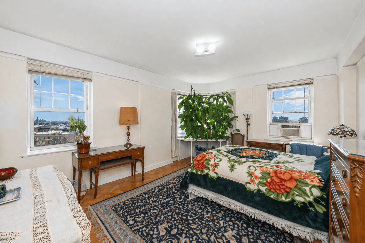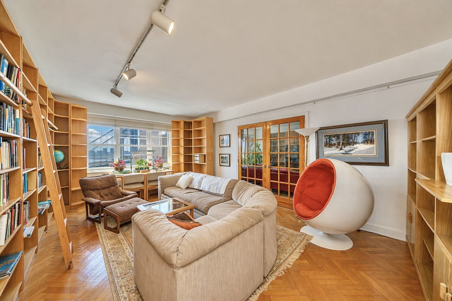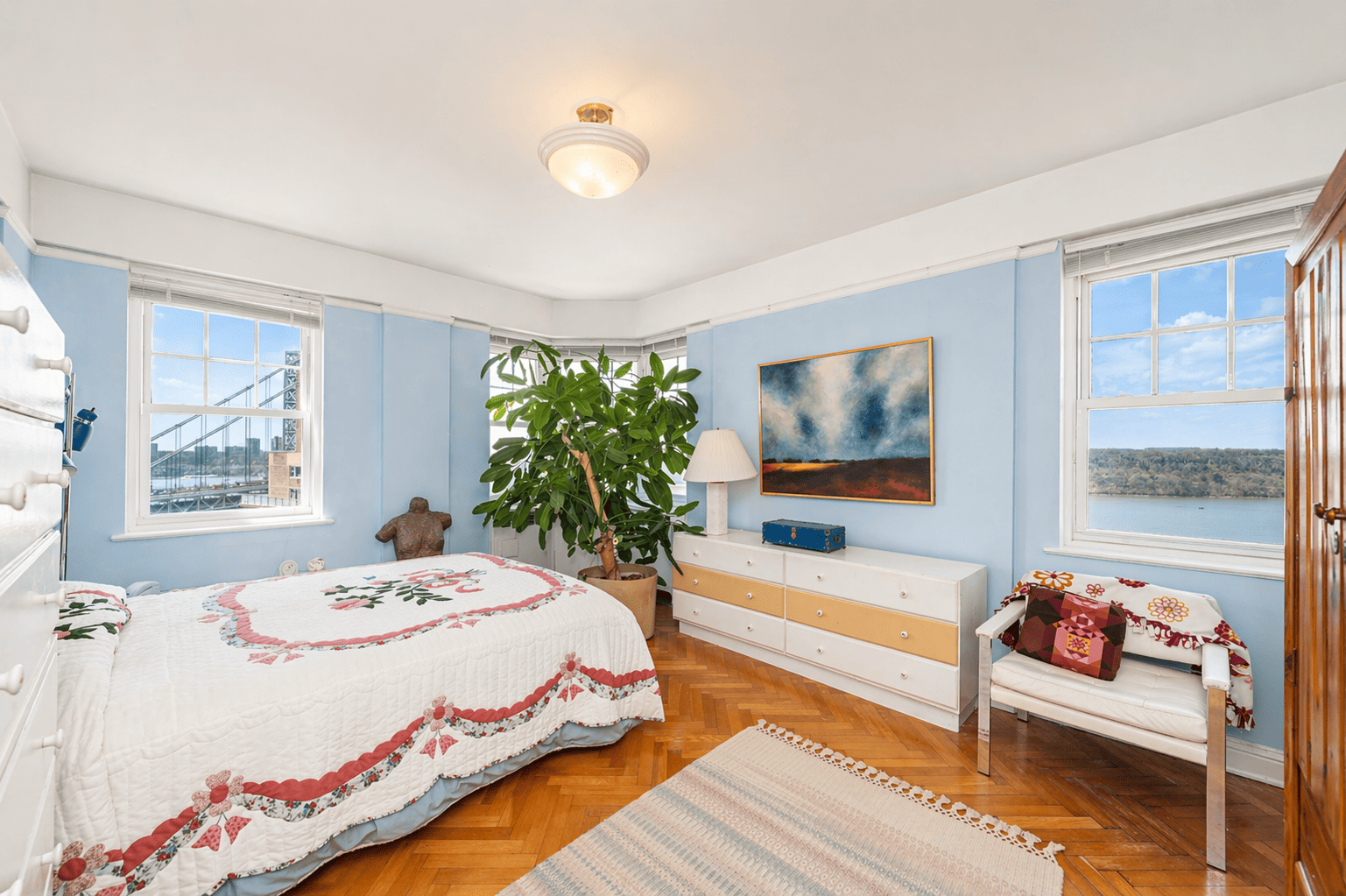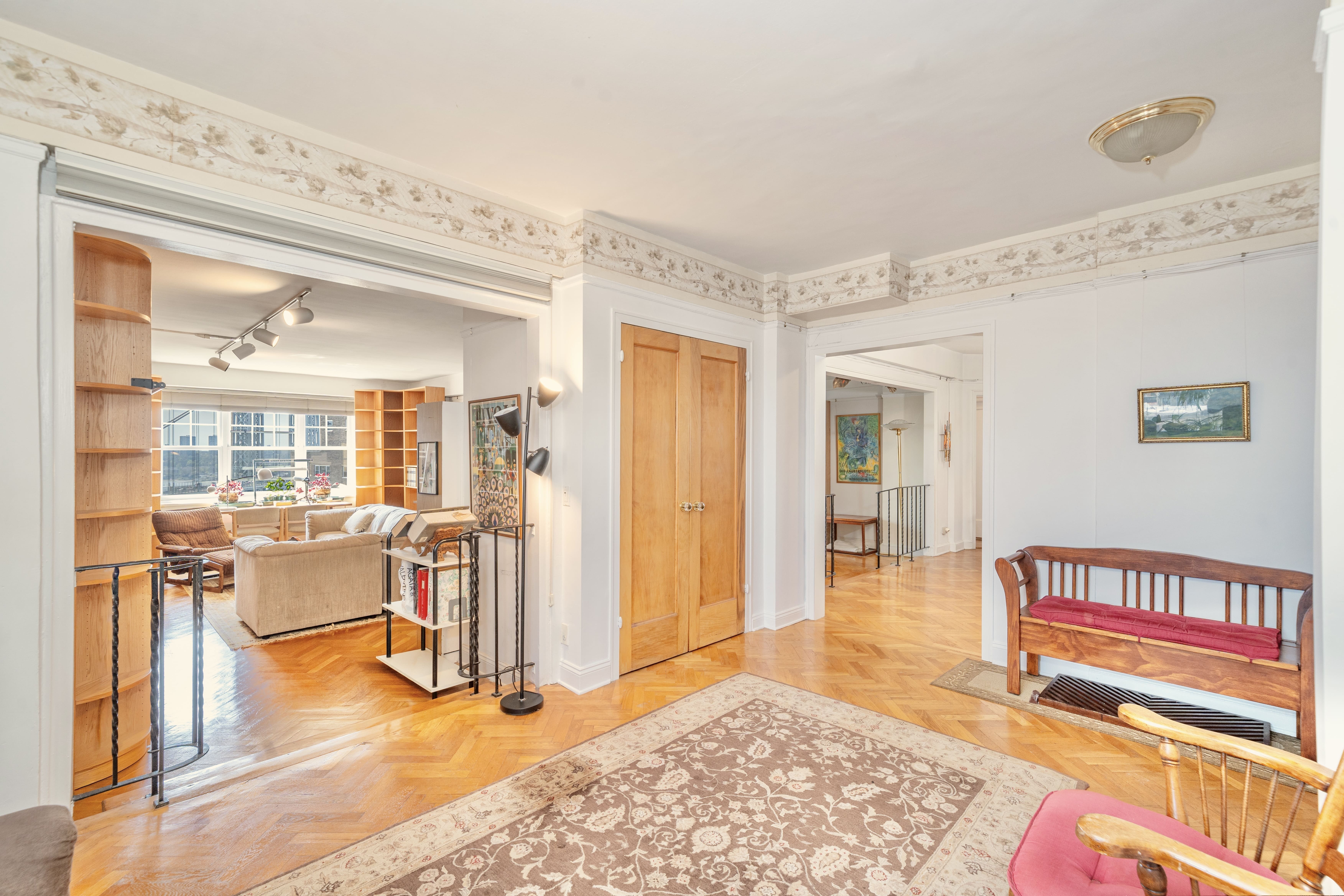 • Perched on the 12th floor, this expansive 3-bedroom, 3-bathroom residence is drenched in natural light. It boasts spectacular skyline views to the south and stunning palisade views to the west. This unit even features a formal library and a dedicated laundry room!! *All showings are by appointment only as per the building* The sheer grandeur of the home at 121/122 welcomes you upon entering, with a grand foyer setting the tone. The herringbone floors further enhance the richness and character of the space. The formal library, an avid reader's dream, features floor-to-ceiling bookshelves and a rolling ladder. This versatile space, ideal as a study, office, or extended living area, connects to the living room via charming French doors. The spectacular views of the Manhattan skyline make the living area of this home truly breathtaking. Perfect for hosting, the living room offers abundant space—enough for a piano—and flows into a formal dining area and a partially open kitchen. Each large bedroom fits a king-sized bed and has an ensuite bathroom, making the primary suite choice difficult! The apartment, which is now a single, combined unit, was originally two separate residences. The former kitchen of one of the original apartments has been converted into the in-unit laundry room. The well-used space has ample storage to make it ever more convenient! Commuting downtown is simple with options including the scenic Hudson River Greenway for cycling, the A-train express or 1-train subway lines, or driving, with on-site garage parking at Castle Village (separate fees for garage) This neighborhood offers an abundance of great local spots. You'll find excellent coffee shops like Buunni, Uptown Garrison, and Forever Coffee, plus unique stops such as the Fountain Book shop or the High Hill Diner! Grocery shopping is easy with options like Frank’s Market and Ozzie's Fresh Market. Castle Village is a highly acclaimed Art Deco complex designed by George Fred Pelham Jr. in 1939, situated on the highest bluff overlooking the Hudson River. The property includes 7.5 acres of spacious grounds and provides a full range of luxury amenities including doorman, gym, garden, kids play room/playground, and breathtaking rooftop. There’s a massive amount of history in this incredible complex, including remnants of a castle that once lived there. The building maintains a classic aesthetic, but its beautiful hallways are exceptionally convenient thanks to Pelham Jr.'s design, which incorporates two passenger elevators and a dedicated service elevator. Special assessment per month $1,128.05 ending 12/29. Assessment is $255.45 per month ongoing Other building facilities include storage, bike room, community room, and additional building laundry rooms