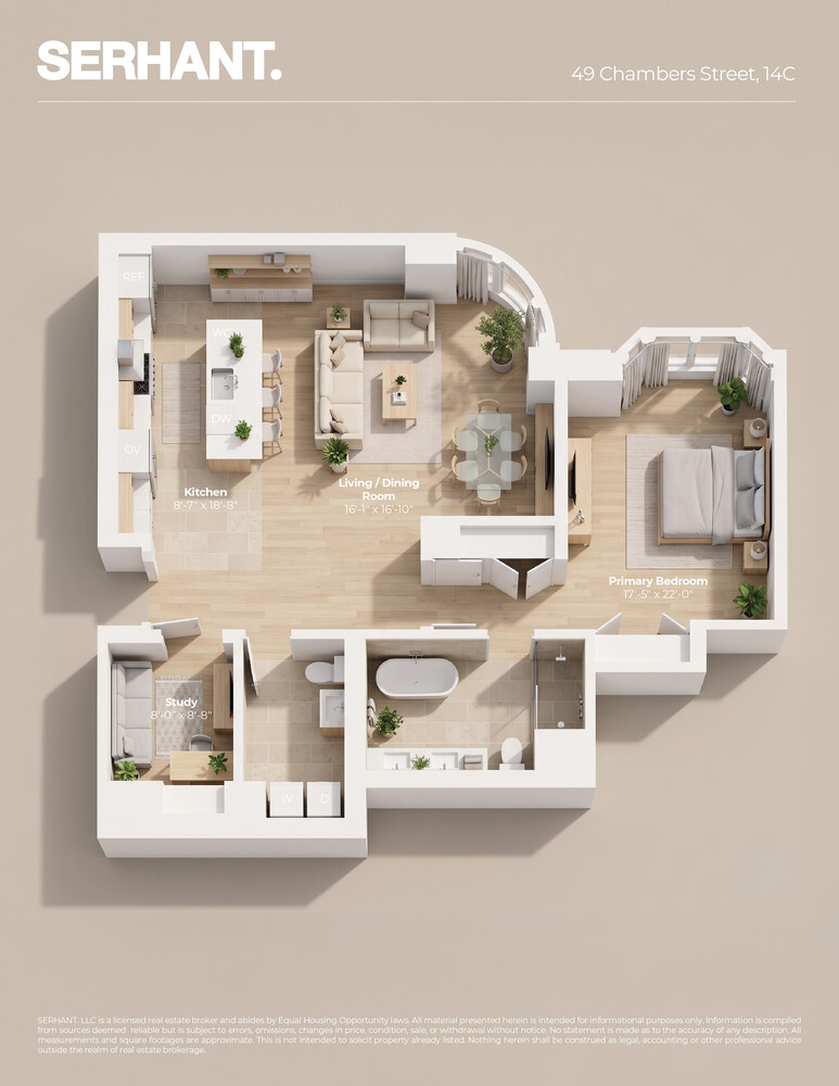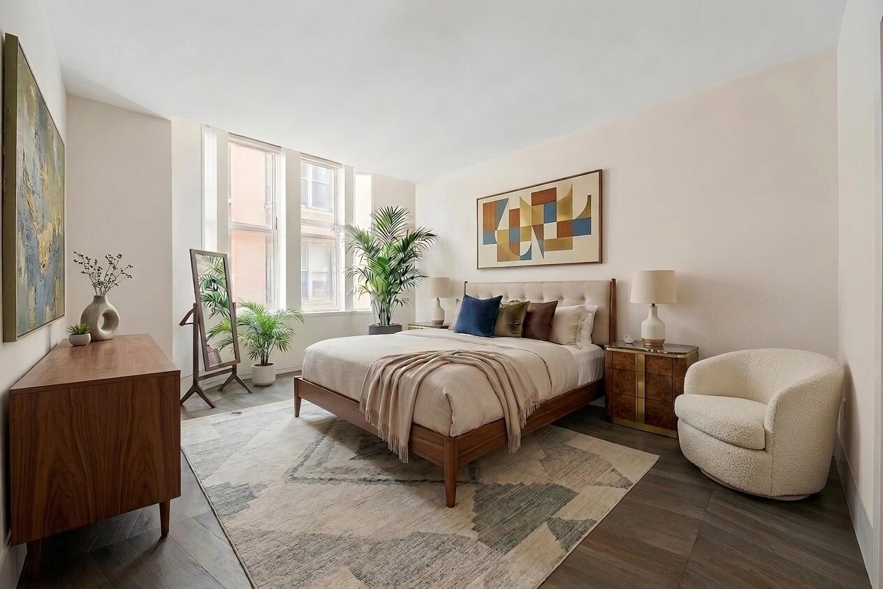 Step into the art of elevated living with this exceptional one-bedroom, one-and-a-half-bathroom residence spanning 1,290 square feet. Set within the iconic Gabellini Sheppard-designed 49 Chambers Street, this home is a rare example of thoughtful design and presence.