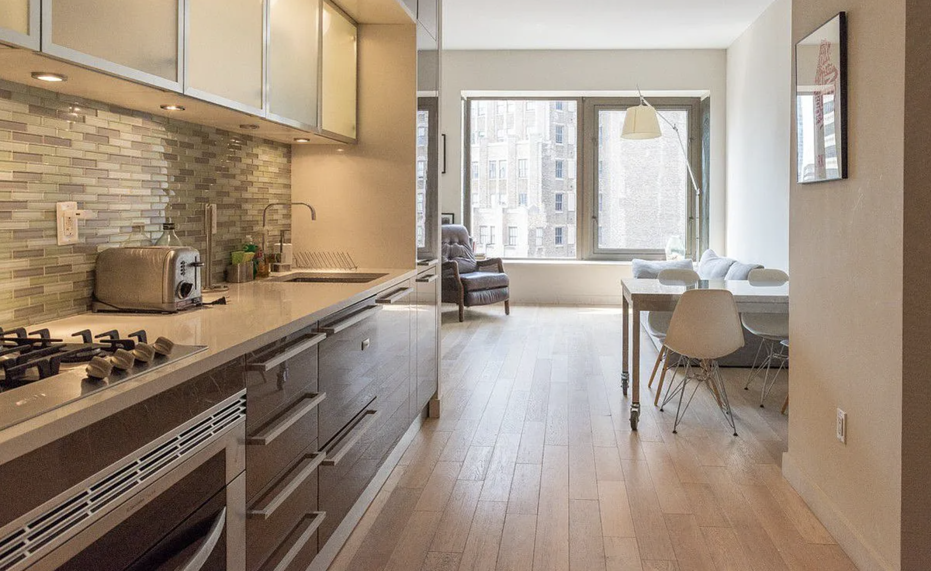 Bring your toothbrush and move in this beautiful one bedroom, one and a half bathroom home! This is a FULLY FURNISHED Loft Style apartment with High Ceiling. Finished to very high standards with wide oak flooring and marble bathroom. Over-sized windows. Top of the line stainless steel Kitchen. Washer Dryer in the unit. Kitchenware INCLUDED; everything you need is already there! Water, Gas and Electricity INCLUDED IN THE RENT. The BUILDING: 24 floors of Fully Serviced Condos. A high-end 5-Star hotel occupies the first 18 floors Rooftop Lounge and terraces with: -Indoor and outdoor entertainment spaces with fireplaces -Hammocks and bbq pits -stunning 360 degrees Manhattan views State of the art Fitness Center on the 18th floor with yoga/dance studios Club room with oversized plasma, Wi-Fi, billiards and more. Over 30,000 sq. ft. of amenities Services: 24-hour Concierge and Doorman Dedicated bellhop for residents On-site Valet parking and Valet laundry service (at additional cost) Room Service & maids on request (at additional cost).