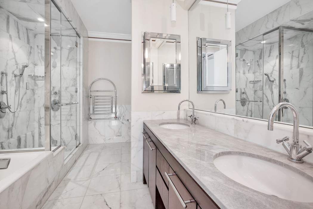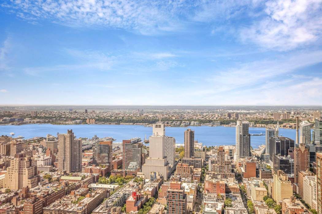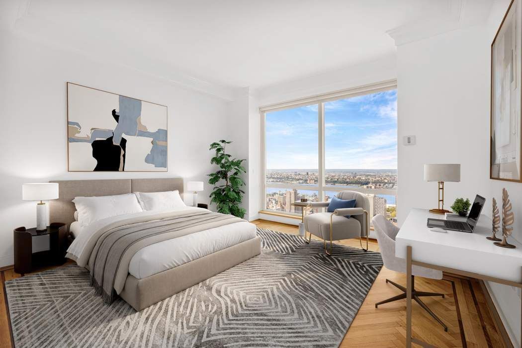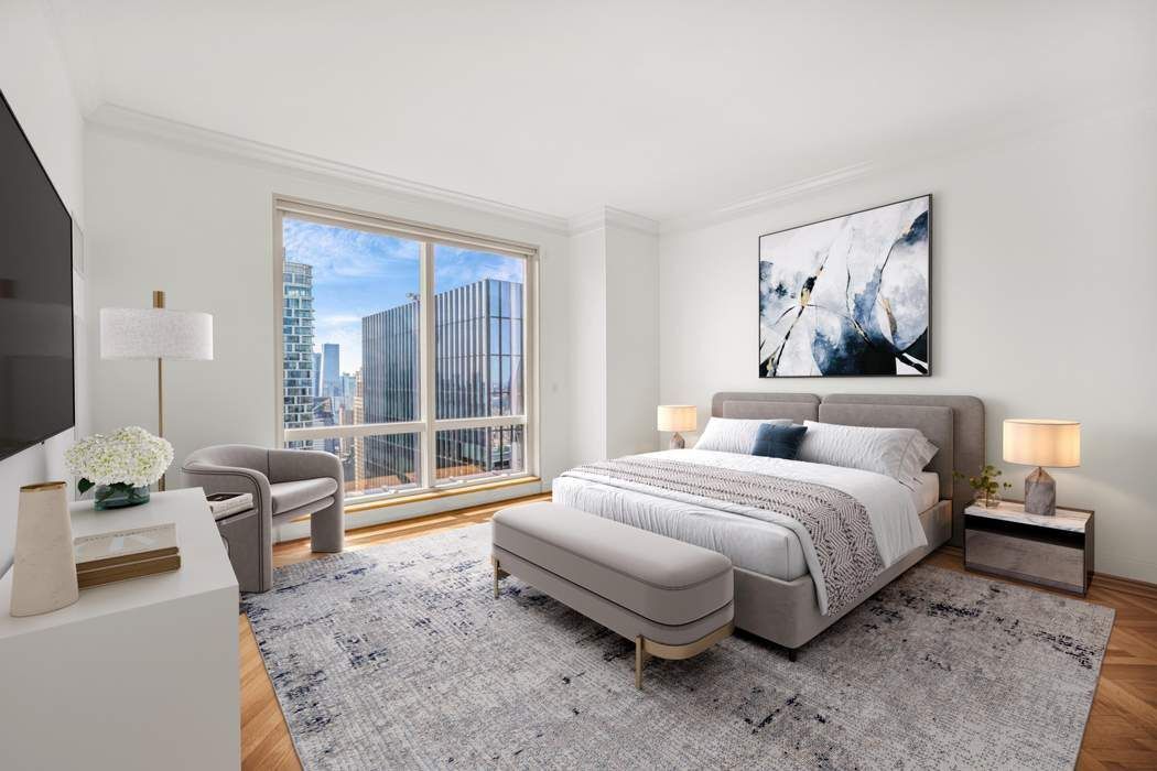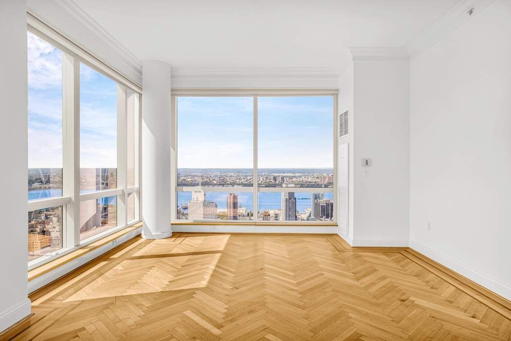 This high floor corner 2-bedroom, 2.5 bath home boasts sweeping Hudson River Views. gracious floor plan including a living and dining room with south-west exposures and windowed eat-in kitchen featuring Sub-Zero refrigerator, stainless steel appliances, garbage disposal, double sinks, full-size Bosch dishwasher, microwave, pantry storage, counter dining and breakfast alcove. The winged bedrooms both include en-suite baths. The sumptuous primary suite has closets galore, steam shower, towel warmer, spa bath with Toto Bidet, steam shower, separate soaking tub and heated towel bar. The second bedroom has a large walk-in closet, en-suite bath and sensational river views. Other features include additional half bath, Maytag washer and dryer, electronic shades through-out, central air, electric blinds and high 10+/- foot ceilings. The herringbone floors have been recently refurbished; the apartment freshly painted and 65C is ready for immediate occupancy. No pets.