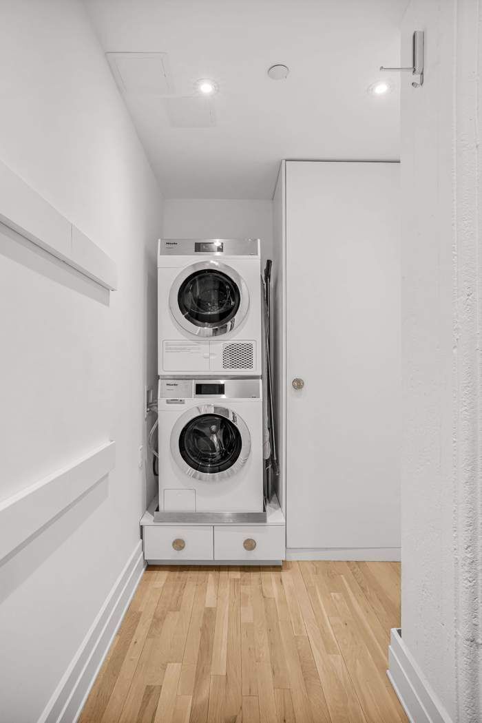 • Welcome to 11F at 30 Main Street, a meticulously reimagined 2,209+/- sqft home that seamlessly blends DUMBO charm with sophisticated modern upgrades. This 2-bedroom, 2.5-bath oasis also includes a versatile interior sleeping area or home office, offering flexibility to suit a variety of lifestyles. Every inch of this double-exposure loft showcases thoughtful design, premium materials, and top-tier craftsmanship. Dramatic beamed ceilings soar 11' high, leading into an impressive corner great room with a sprawling layout for both living and dining. Newly installed automated blinds offer effortless control of light and privacy. The hardwood floors were recently refinished with a light oak, complemented by custom base moldings designed to match the original finishes. Towering south and western-facing windows offer views of Brooklyn Heights, the Brooklyn Bridge, the East River, and the NYC Skyline. The open chef’s kitchen is a striking centerpiece, custom-designed by Ornare and defined by gold-tinted glass cabinetry with integrated LED lighting. A dramatic black Italian quartzite waterfall island anchors the space, complemented by Ornare cabinetry, wooden drawer inserts, and double self-closing drawers, all softly lit by alabaster pendant lighting from Timothy Oulton. A La CornuFe 90 gas stove with upgraded brass burners is paired with a custom hood vent and LED lighting, while top-tier Miele built-in appliances, a Thermador double-door refrigerator, and a Thermador 3-zone wine fridge complete the high-performance array. The large Kraus sink with disposal and DornBracht fixtures set against matching black quartzite counters and backsplash with custom LED underlighting. For entertaining, a sleek custom bar with black-tinted glass cabinets, integrated lighting, a quartzite countertop, and a DornBracht sink offers both style and utility. The generously sized primary suite is a retreat of its own, offering stunning views, custom Tom Dixon lighting, floor-to-ceiling custom wardrobe, and an additional custom-fitted walk-in closet. The fully renovated en-suite bath is equally impressive, featuring marble flooring, a large walk-in shower that is highlighted by 16-inch rain and handheld showerheads accented by impeccable floor-to-ceiling Italian quartzite. A custom dual vanity with storage drawers is topped with matching Italian quartzite countertops, completed by Duravit sinks and triple Robern medicine cabinets. Across the living room and removed from the primary bedroom, the second bedroom is equally well-appointed with an en suite bathroom with custom spa-like finishes. The tranquil interior bonus room is ideal as the third sleeping area or a home office. The powder room features a custom-designed Ornare vanity with a black Italian quartzite countertop, integrated sink and backsplash, a custom-lighted mirror, marble tile floors, DornBracht fixtures, and a Duravit toilet. Additionally, there is an oversized laundry room featuring a stacked Miele washer and dryer, floor-to-ceiling storage, and wall-mounted drying racks. Rounding out this amazing home are upgraded mechanicals, including newly installed A/C and heat exchange air exchangers with a two-zone system, separate Nest thermostats for heating and cooling, Runtal radiators, energy-efficient LED lighting, and all-new Lutron dimmers. Originally built as a factory in 1916, The Sweeney Building is now the true classic residential loft building featuring: a 24-hour attended lobby, friendly staff, a bike room, a newly renovated gym, basement storage, and a breathtaking roof deck with sweeping views. Located in the heart of DUMBO, The Sweeney Building is in proximity to the famed Brooklyn Bridge waterfront park, Janes Carousel, Empire Stores, DUMBO House award-winning playgrounds, the A/C/F trains, and the water taxi. Celebrated for its architecture, DUMBO features charming cobblestone streets, cafes, restaurants, and more!