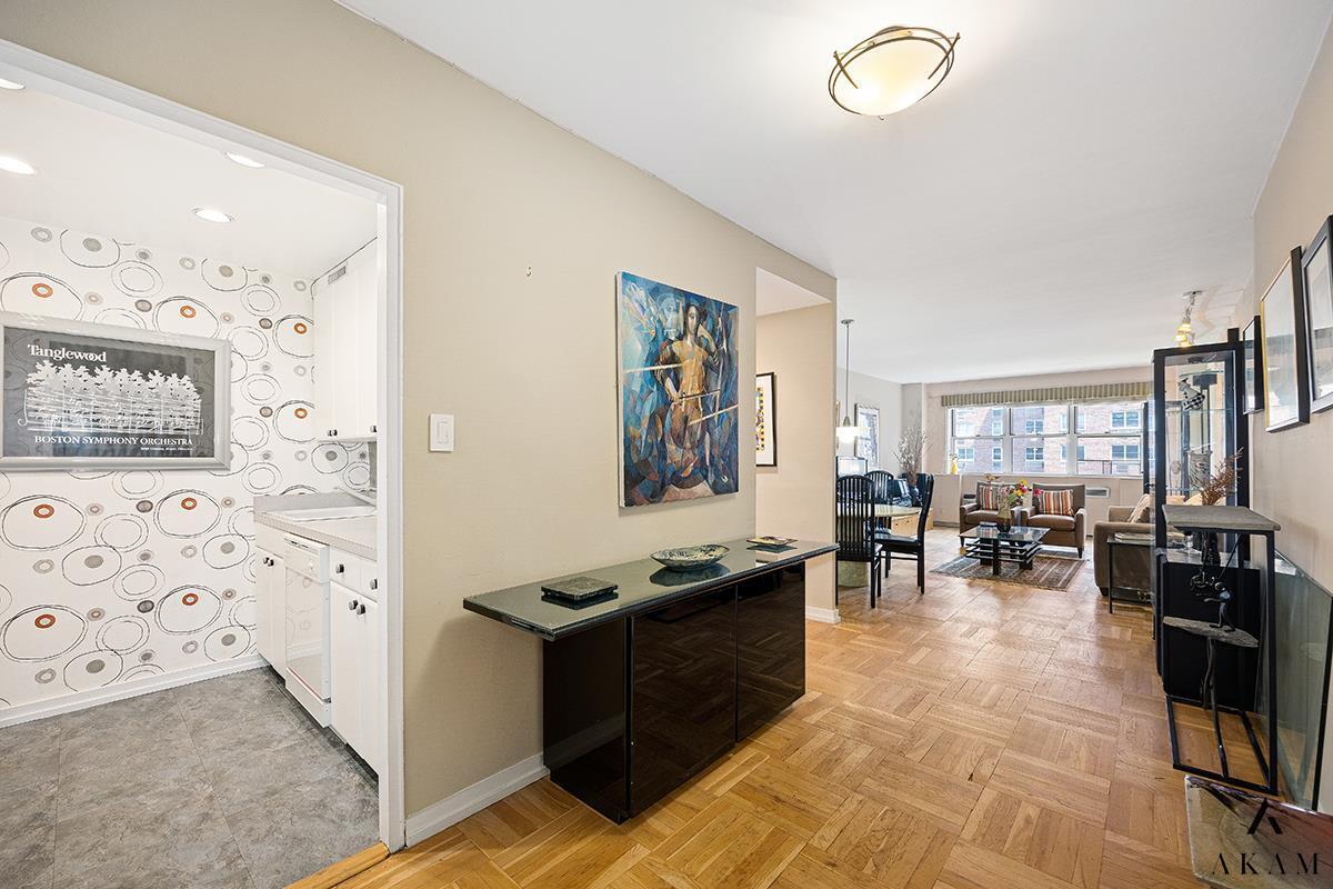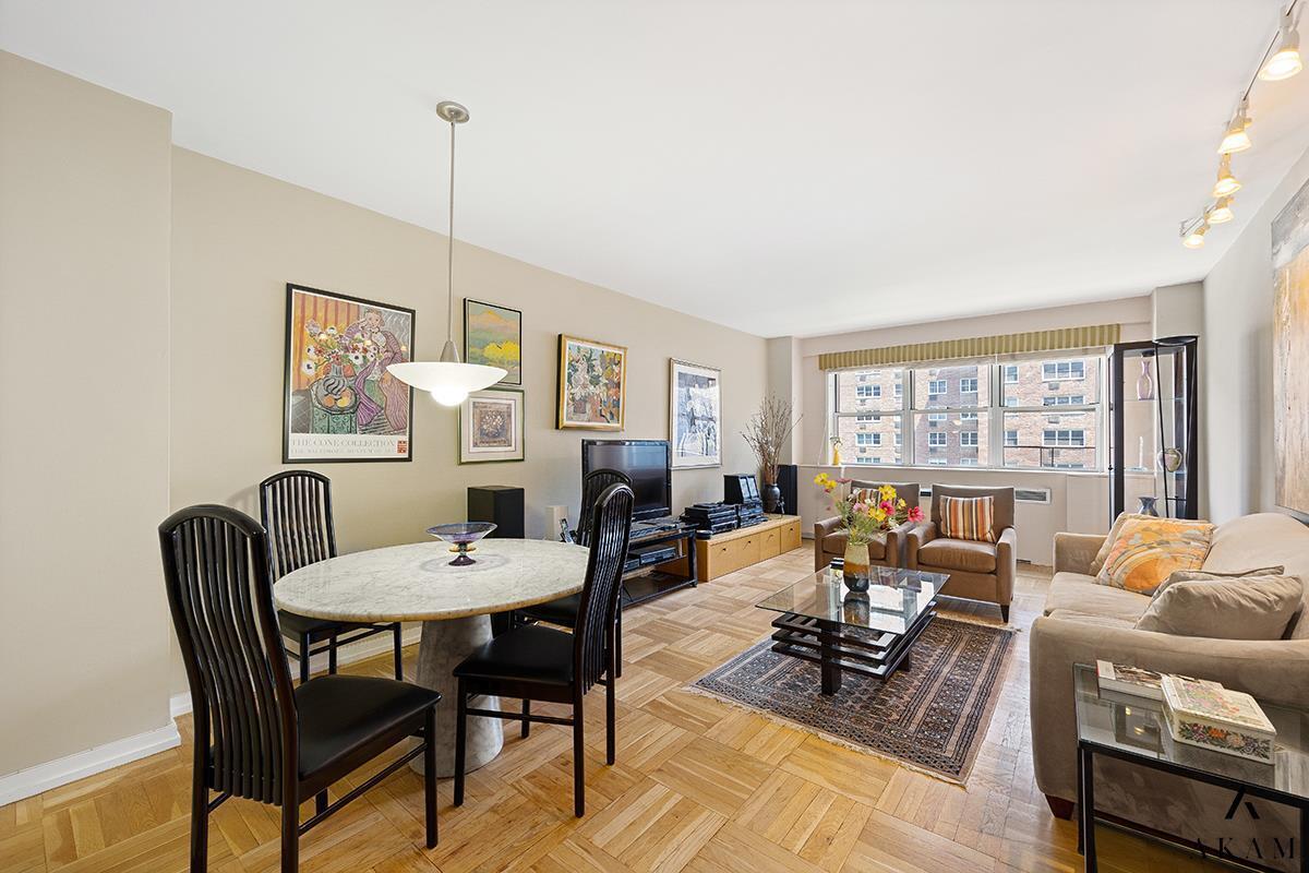 RARELY AVAILABLE "D" LINE, one of the largest bedroom's in the building, now awaits your personal touch. This unit features beautiful views over the private 2-acre park that is reserved for residents only. The spacious entry foyer provides a gallery wall or even a small dining area outside the kitchen. The living room is well-proportioned for relaxing and entertaining, with plenty of room for your furniture along with a dining area. The king sized corner bedroom offers western and northern exposures with garden views from both. Living and bedroom can accommodate a home office with room to spare. Generous closet space throughout (5 in total) including a large walk-in. Kitchen has dishwasher and full refrigerator. Apartment 8D is located in a corner of the building, extremely quiet, with only one neighboring unit.