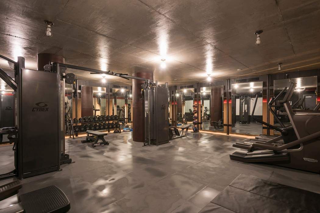 The fully-equipped open chef’s kitchen includes a wall of integrated Italian cabinetry by RiFRA, Gaggenau appliances, a Bosch dishwasher, a vented hood, and an impressive island wrapped by Italian stone with an abundance of storage solutions throughout. A separate laundry room is just adjacent to the kitchen area, complete with a vented LG washer/dryer, a large counter, and additional storage above.