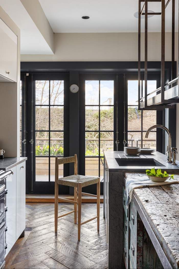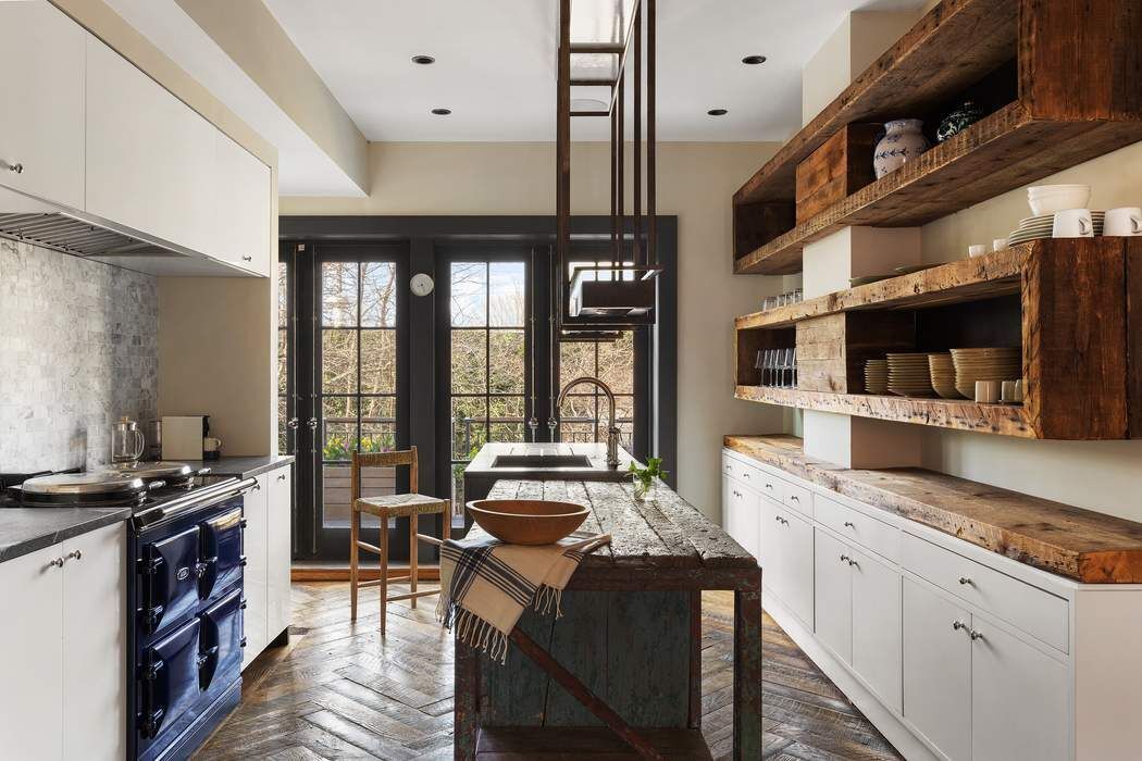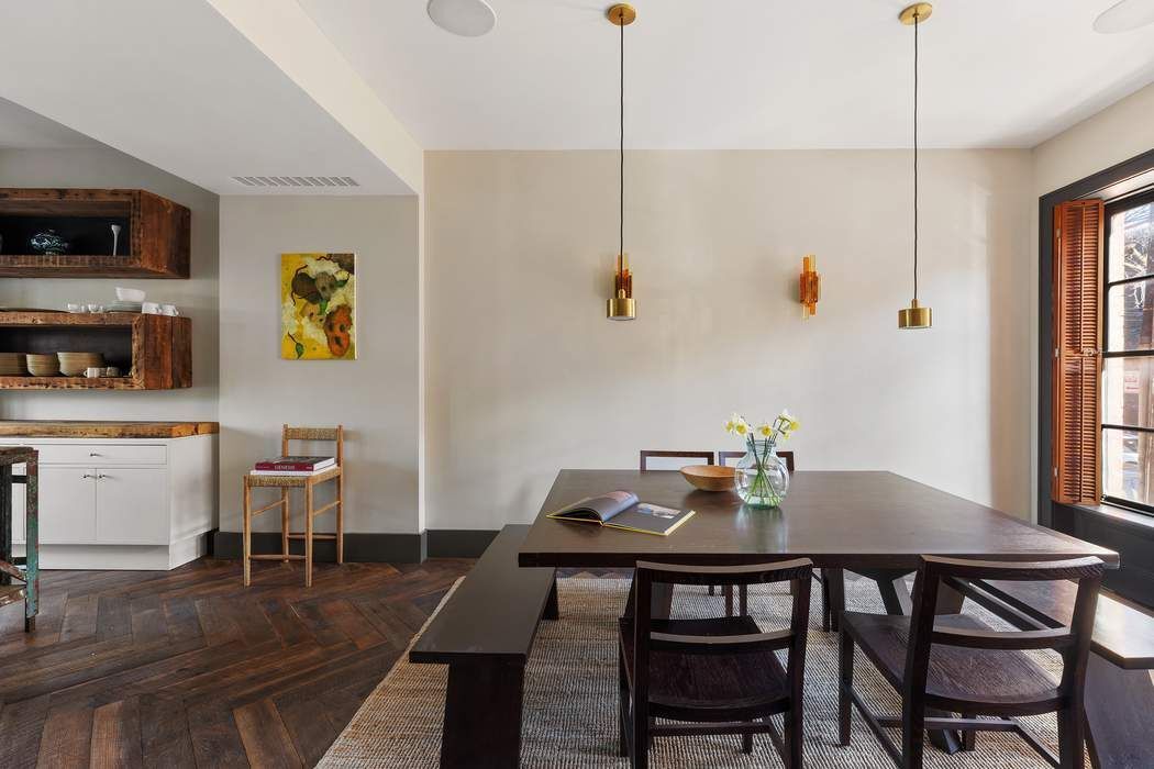 As you enter up the stoop you are welcomed into a fabulous parlor level which is home to the dining room with floor to ceiling windows and open kitchen with doors that open onto the south facing terrace overlooking the garden. The kitchen features an Aga range, Sub Zero refrigerator and an abundance of work surfaces and storage space. On this floor there is also an entry hall, closets, and a powder room. A wonderful feature of the house is the fabulous original staircase that bathes the house in light from above and creates a graceful flow throughout.