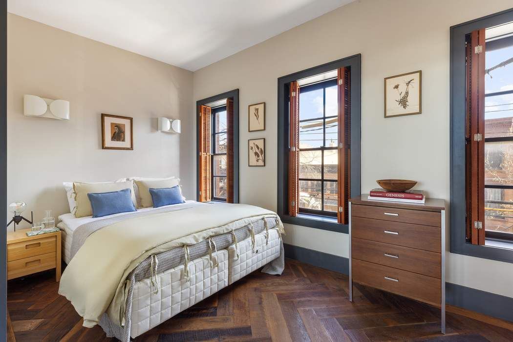 Elegance Reimagined. Located on the most desirable block in Red Hook, this extraordinary single family home offers everything one could dream of from exquisite scale, flawless condition, suffused with light, New York Harbor views, south facing terrace and garden. Bathed in sunlight this glorious home which keeps its historic past however with all the conveniences of a modern home. It is both enchanting distinguished and intimate yet practical with an open plan. Very rare is the intelligence and warmth that has gone into its creation from radiant heated reclaimed chevron walnut floors throughout, wooden shutters, Forbes and Lomax switches, Lutron lighting, Sonos speaker system, Nest thermostats, double paned windows and a generator.