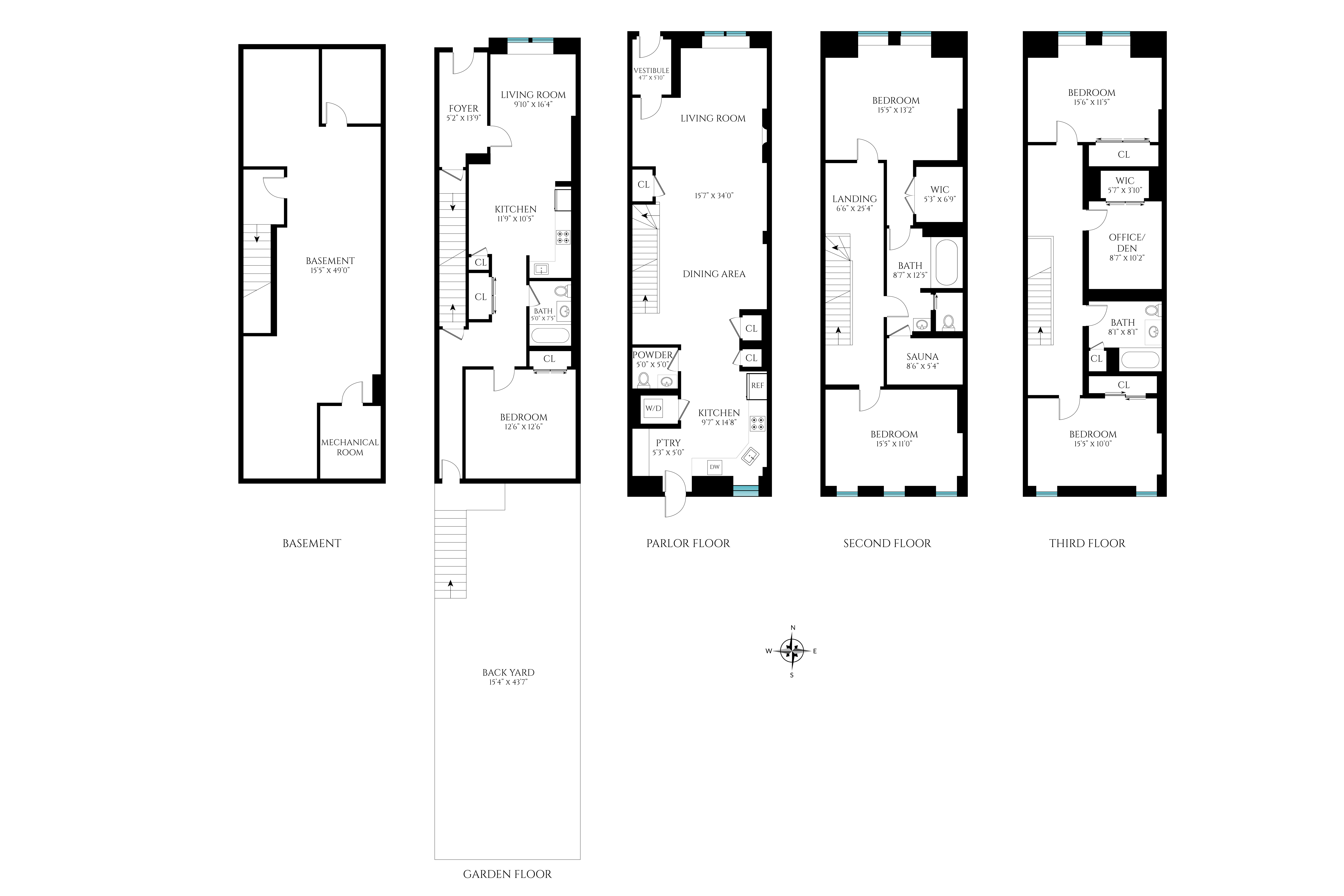 Spanning the parlor, second, and third floors, the owner's unit boasts 4 spacious bedrooms, an office/den, and 2.5 bathrooms. High ceilings, and generous room proportions make this a perfect canvas for a custom renovation. As you step through the entrance, you'll be greeted by hardwood floors that span throughout the residences. The townhouse's design ensures ample natural light through its northern and southern exposures, creating a bright and inviting atmosphere.