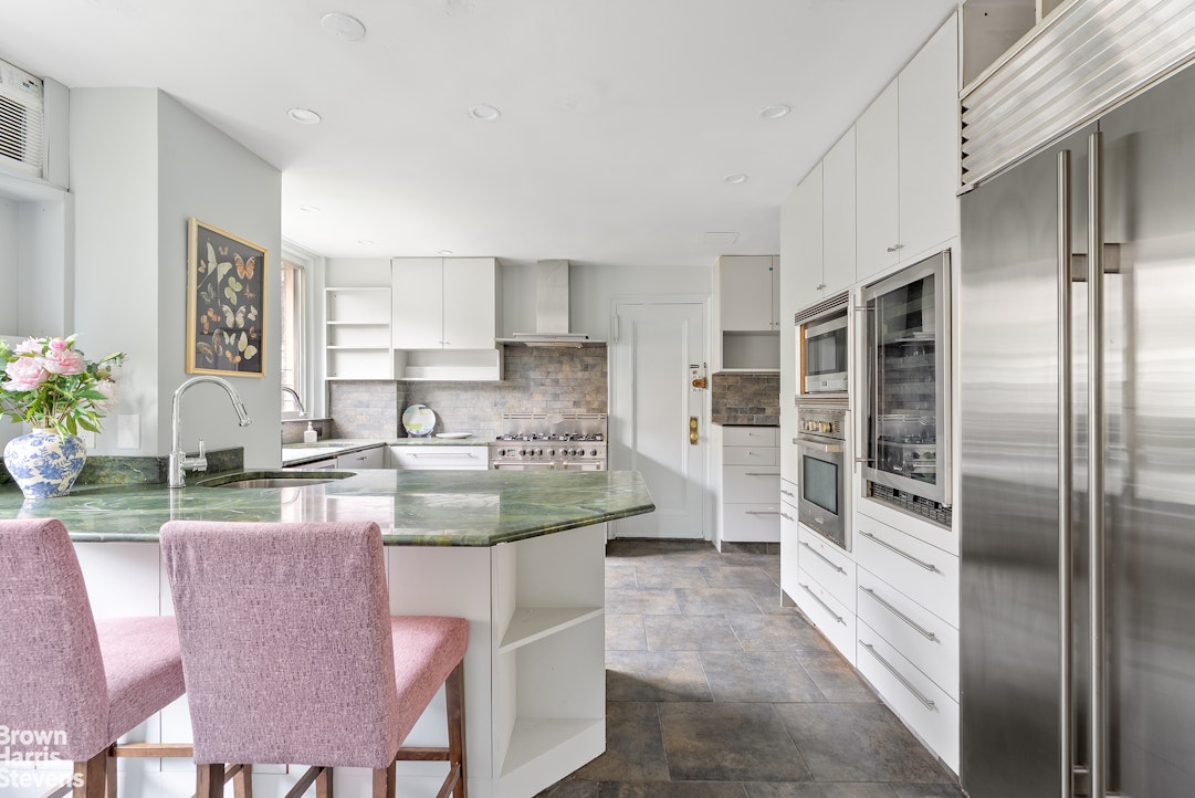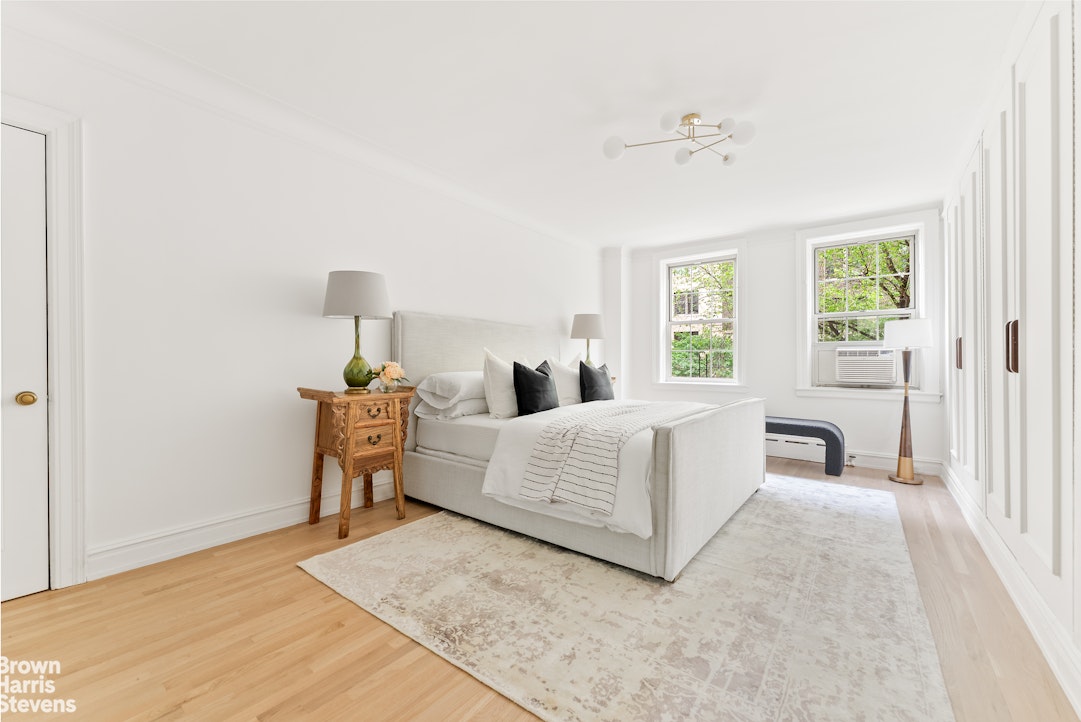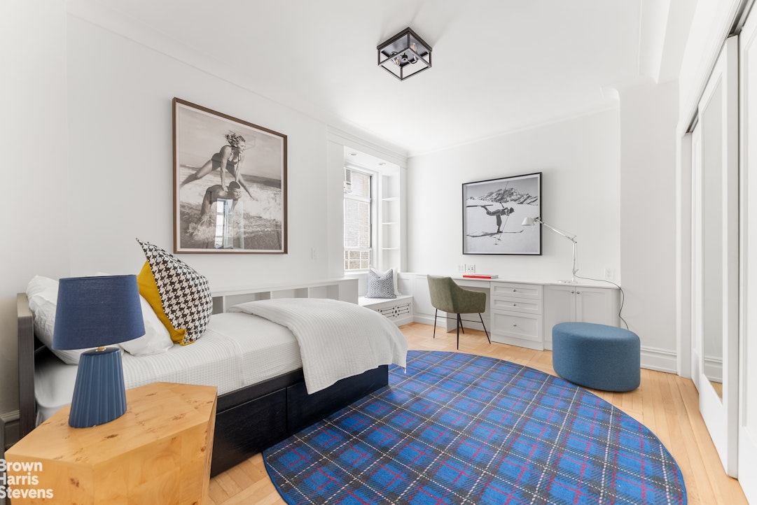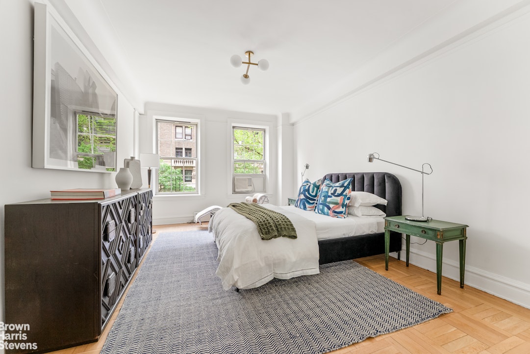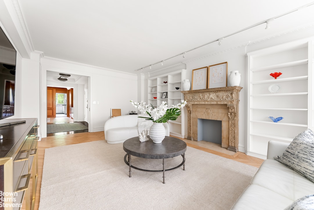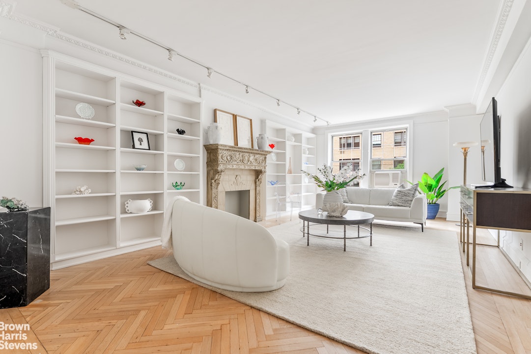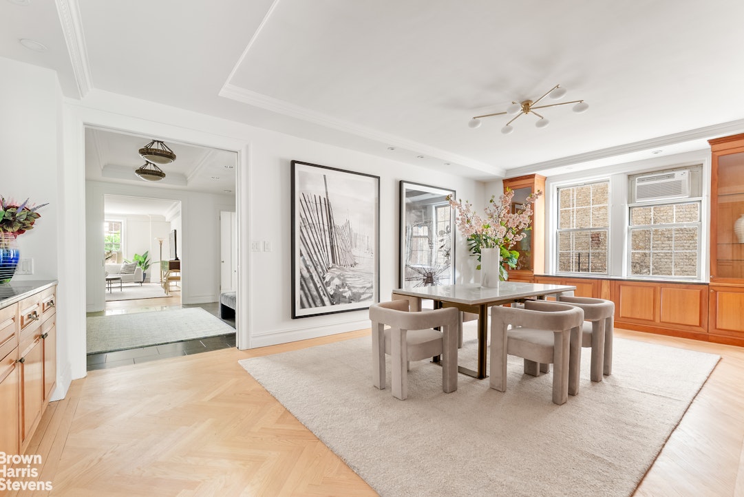 This elegant prewar co-op offers approximately 2,200 square feet of refined living space, perfectly designed for entertaining and everyday comfort. The apartment's traditional layout features formal rooms with high ceilings and beautiful moldings, making it an ideal setting for hosting memorable gatherings. The expansive living room easily accommodates a grand piano and features beautiful bookcases. The formal dining room, outfitted with elegant custom built-ins, comfortably accommodates large gatherings, ideal setting for dinner parties and celebrations of any kind. East-facing windows flood the spaces with beautiful morning light and offer charming views over tree-lined West End Avenue.