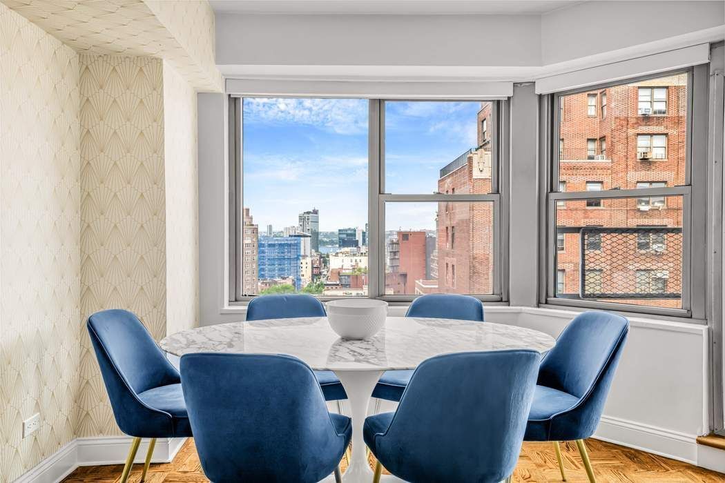 Light filled and move in ready Greenwich Village one bedroom home with private terrace. Bright and spacious, Residence 17E at 175 West 13th Street in The Cambridge House offers city and river views to the west, north, and south from the Hudson River to Hudson Yards. The light and open living/dining room features a wall of windows and entrance to the private terrace. The bedroom also has a wall of windows and overlooks the terrace. The renovated kitchen features high-end stainless-steel appliances such as Filli Bertazzoni gas stove and Bosch refrigerator and dishwasher and the renovated bathroom has porcelain tiles and flooring as well as an electric Toto toilet and Dombroff (3Jet) shower fixture. There are hardwood floors throughout this unique home as well as abundant closets and storage with two custom walk-in closets plus a large entry closet. At the crossroads of Greenwich Village, West Village, and Chelsea, The Cambridge House, a luxury coop on one of the Village's prettiest streets, offers shopping, restaurants, nightlife, and transportation at your doorstep - the quintessential Greenwich Village experience. The Cambridge House at 175 West 13th Street is impeccably run and features a full-time doorman, resident super, laundry room, storage, bicycle room, and a beautiful, planted roof deck with stunning views of the city and the Hudson River. Pets are welcome. Co-purchasing, pied-a-terres are not permitted.