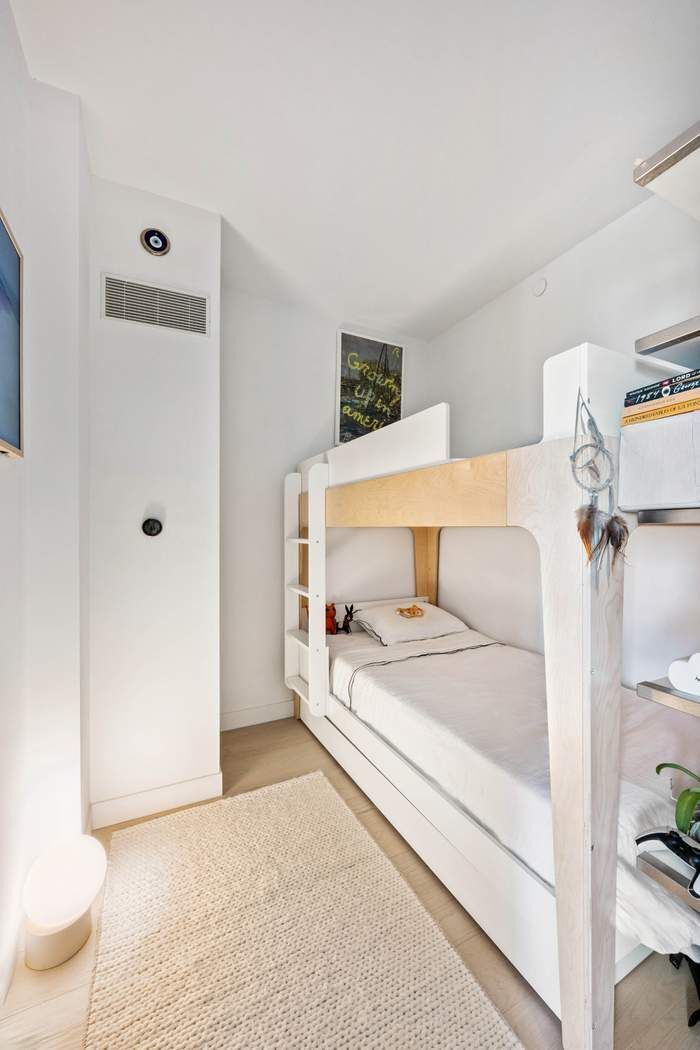 The Most Exceptional Home at 450 Washington Residence 410 Rare West-Facing 1BR + Home Office with Iconic Water Views There is only one like it — and there will never be another. Residence 410 at 450 Washington is the most customized, space-maximized, and light-saturated one-bedroom (plus home office) in the building — transformed into a true two-bedroom sanctuary with unrivaled sunset and Hudson River views. Legally a one-bedroom, this 755 sq ft home has been thoughtfully reimagined to live like a two-bedroom. The home office features a sliding pocket door, shelving, and bunkbeds — creating a flexible second sleeping area or private workspace without sacrificing style or flow. Expansive west-facing windows frame uninterrupted river views and soak the apartment in golden-hour light — making this one of the happiest homes in Tribeca. The double-pane, sound-insulated windows ensure a tranquil interior experience, and are framed by Pure White Quartzite windowsills — a subtle but refined material upgrade that echoes the home’s crisp, elevated palette. The kitchen is a standout — not only featuring the largest cabinet layout in its line, but also wrapped in richly veined Brazilian Quartzite on both the countertop and backsplash. This striking natural stone anchors the space with quiet drama and warmth. A full suite of Miele appliances — refrigerator, oven, and gas cooktop — enhances both the functionality and finish of this design-forward culinary zone. Custom upgrades throughout include a sculptural MDF Italia Random 3c bookshelf, premium espresso machine, California Closet, and a sleek entry bench with integrated shoe storage. The bathroom features a luxury Toto bidet toilet with heated seat and wash functions — combining hygiene, comfort, and design in one sleek installation. Both sleeping areas are equipped with Samsung Frame TVs, mounted flush with concealed wiring for a clean, gallery-like aesthetic. Features Include: ? Direct west-facing Hudson River views with exceptional natural light ? Flexible home office with pocket door, bunkbeds & shelving ? Largest kitchen cabinet layout in this line ? Brazilian Quartzite countertop and full-height backsplash ? Miele refrigerator, oven, and gas cooktop ? Double-pane, sound-insulated windows with Pure White Quartzite sills ? California Closet + additional storage ? Entry bench with shoe storage ? Luxury espresso machine ? MDF Italia Random 3c bookshelf ? Toto bidet toilet with heated seat and wash functions ? 2 Samsung Frame TVs (cable-free mounts) ? 3-zone air conditioning A rare offering in Tribeca’s most refined new development, Residence 410 pairs smart design with pure joy. This spectacular home sets a new standard in luxury living. Rental application fee, $750.