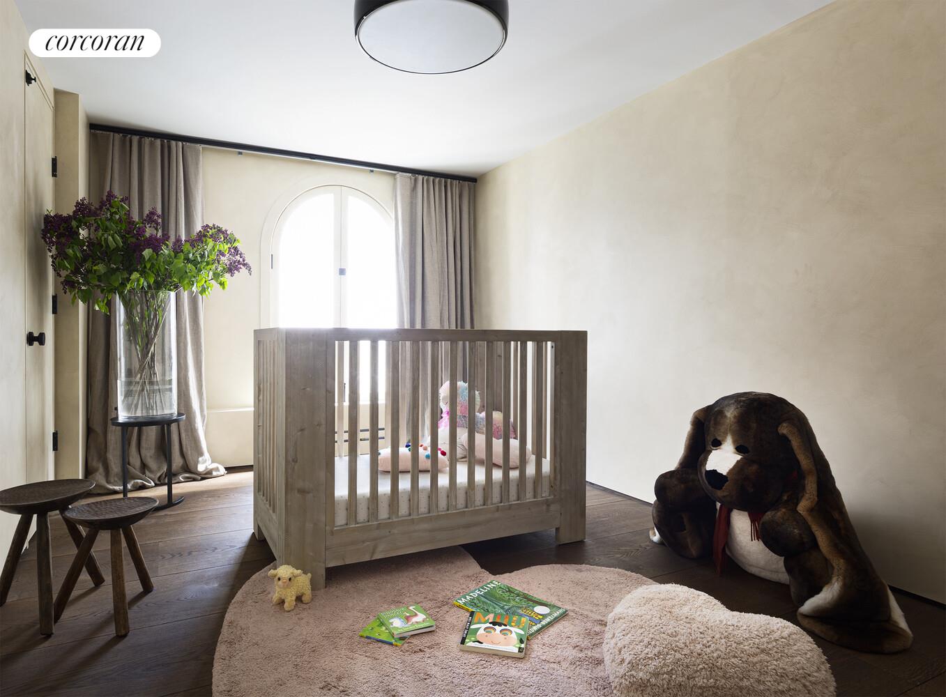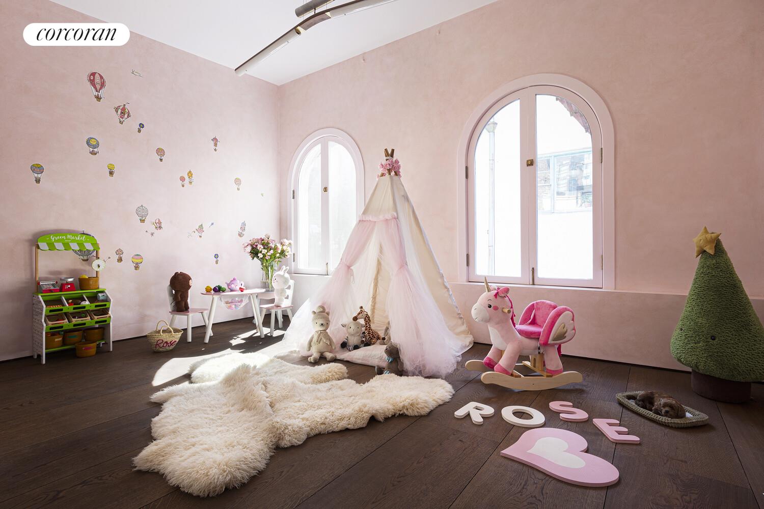 This loft underwent a two-year, multi-million-dollar gut renovation that finished in Fall 2021 with the finest materials and craftsmanship. The floors: 16-inch wide (450mm) Dinesen Heart Oak planks, imported from Denmark, with some planks reaching as long as 20 feet long. All stone used in the loft is slab imported from Italy - not a single tile used, even in the laundry room. The custom Venetian plasterwork was created by artist Benjamin Lai. From the floating art walls to the brushed bronze Forbes and Lomax switches, which are individually engraved, attention to detail is rarely seen in any property. The rounded alcove off the great room, currently set up as a TV nook, provides a natural area for a future stair to the roof if private outdoor space is desired (roof rights would need to be purchased from the building by separate agreement).