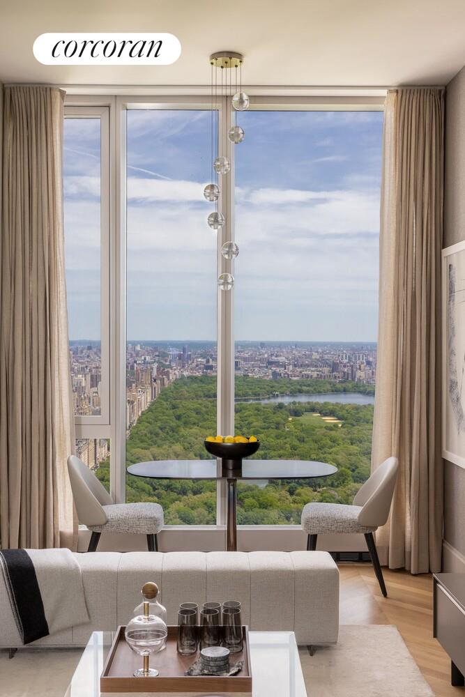 This north facing two bedroom, two-and-a-half-bathroom residence is located at an elevation of over 675 feet and features direct views of Central Park from every room in the home. Floor-to-ceiling glass spanning the entire residence, allows for an abundance of natural light.
