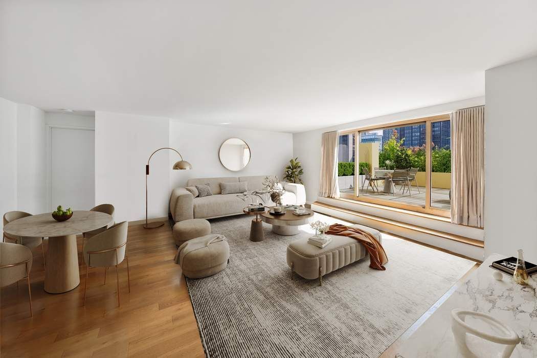 HIGH FLOOR TWO BEDROOM WITH PRIVATE TERRACE ON CENTRAL PARK SOUTH Residence 27D is a one-of-a-kind prewar two bedroom residence spanning 1,212+/- square feet and offers a spectacular lushly landscaped 515+/- sq ft private terrace with breathtaking city views. The entry foyer opens into an expansive living and dining area, framed by floor-to-ceiling windows and ebonized wood floors. This sun-filled home features uninterrupted views facing south, east and west and is bathed with natural light throughout the day. Glass doors lead seamlessly onto your terrace oasis – an entertainer’s dream floating above the city. The separate kitchen is equipped with sleek stainless-steel appliances and ample cabinet space, blending elegance with practicality. A full-size washer/dryer and powder room add to the home’s convenience. Both bedrooms are pin-drop quiet with a split layout for optimal privacy. The primary suite is generously scaled, with room for a sitting area or home office, customized closets, partial views of Central Park and a spa-inspired bathroom featuring a deep soaking tub, double vanities, and glass-enclosed shower. The secondary suite boasts its own full bath, a wall of closets, and additional built-ins, complemented by iconic south-facing vistas. 106 Central Park South, originally opened in 1930 as the Barbizon Hotel, is a full-service white glove Condominium located at the foot of Central Park, between Fifth Avenue and Columbus Circle. This New York City gem features Art Deco architectural detailing and graceful historic style, elements including a majestic entrance lobby and gilded gold-leaf spires, services include a 24-hour door team and concierge, valet, garage, and maid service is available at an additional fee. Living on Central Park South provides unparalleled access to one of the world's most iconic green spaces. You can enjoy morning jogs, leisurely walks, or simply relax and soak in the stunning views of Central Park from the comfort of your own apartment. Fees include: -$1000 Processing Fee (non-refundable) -$500 Waiver Fee (non-refundable)
