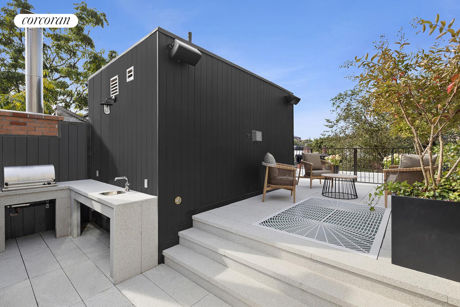 The amazing roof deck boasts West Village views, lovely landscaping with an irrigation system, seating area, grill, and sink. An amazing space to have dinners outdoors, entertain, or just relax with a book.