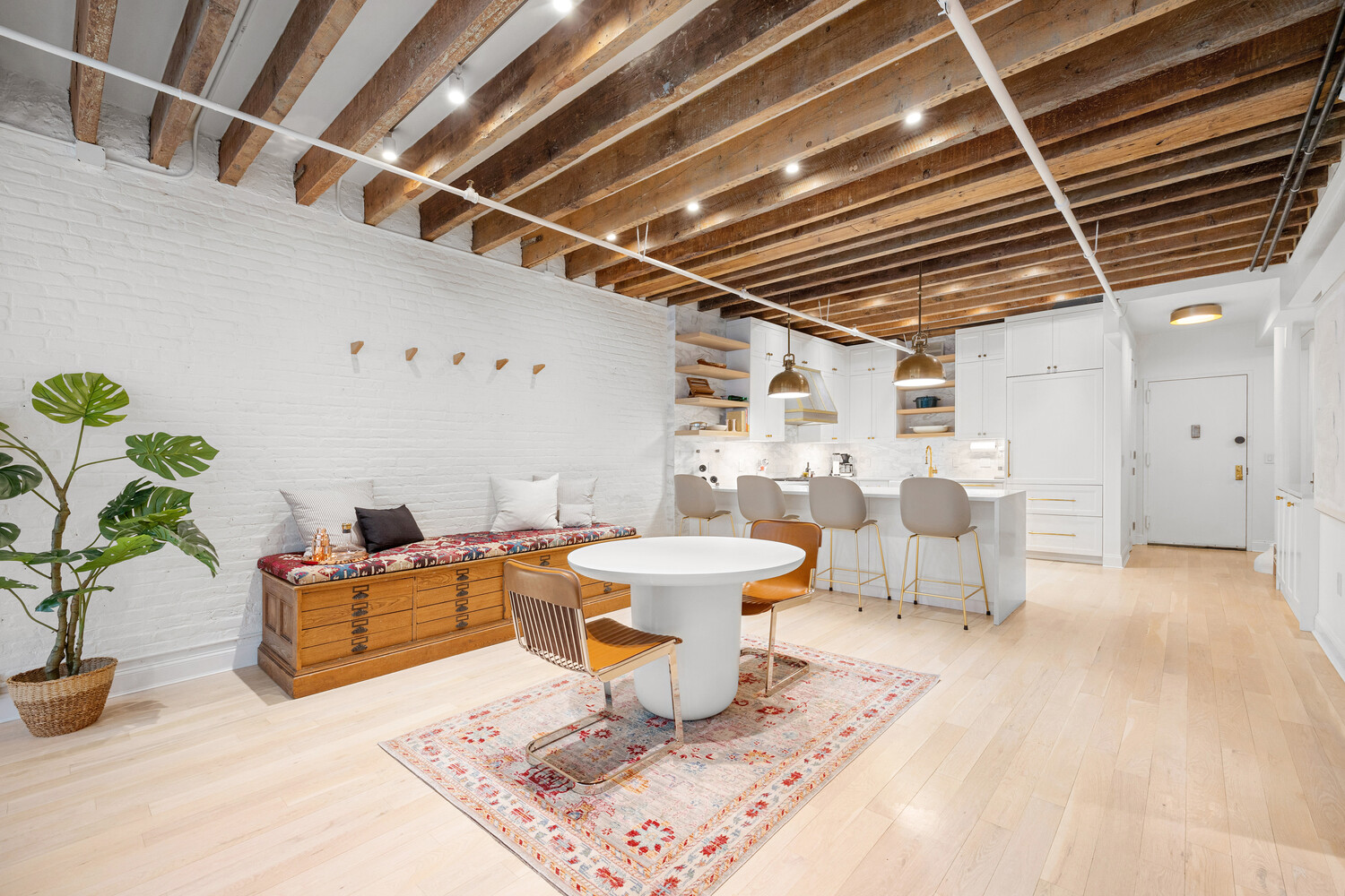 Welcome to this exceptional Dumbo loft, where modern luxury meets historic charm. Renovated in 2019, this rare find showcases a truly special feature-stunning exposed beamed ceilings that are incredibly unique to this apartment. Paired with exposed brick and soaring 10'3" ceilings, this home offers an unparalleled character rarely seen in the area.