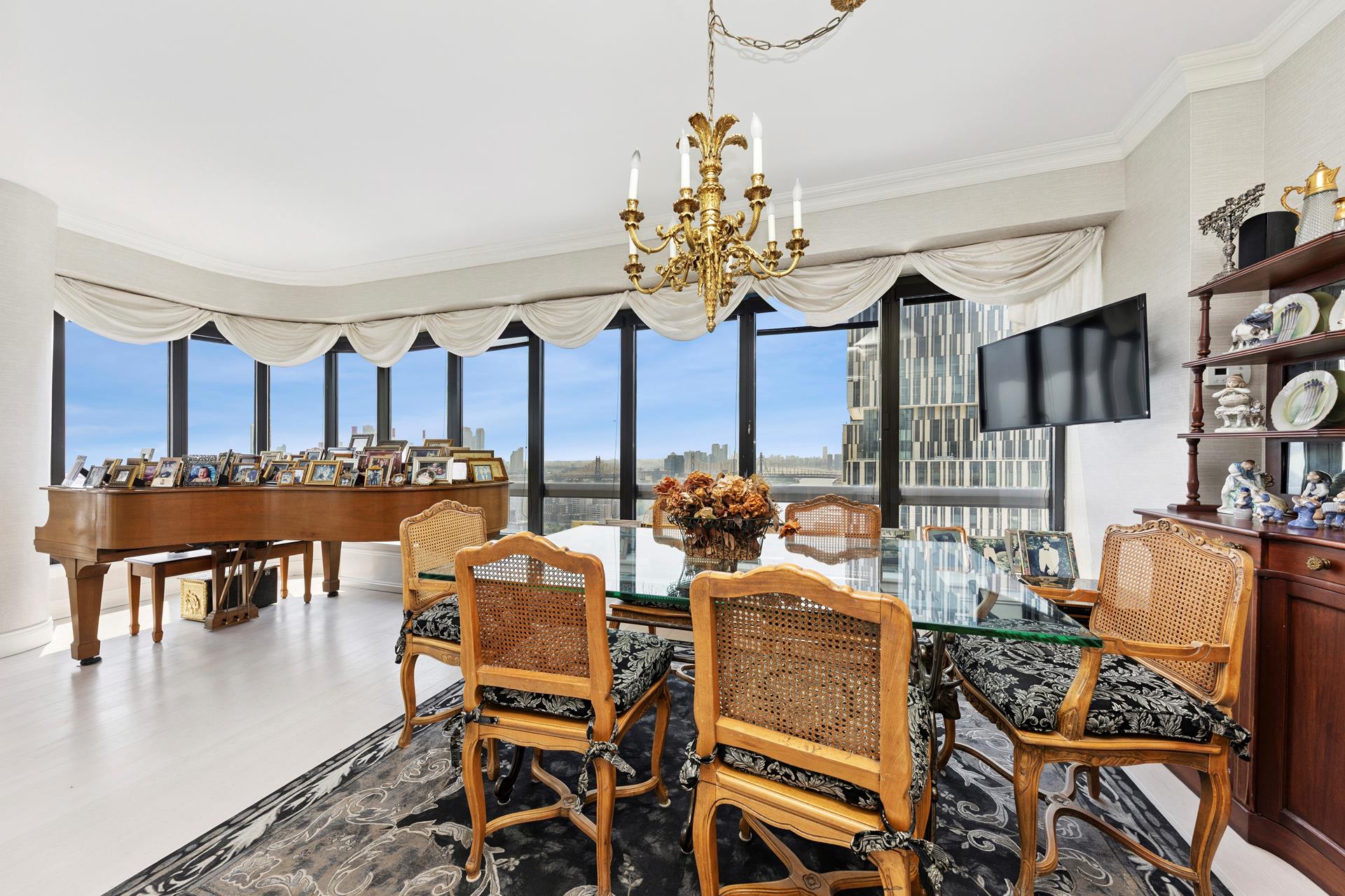 High floor corner unit on the river with south and east exposures. A must see 2 beds 2.5 marble baths, oversized windows all with direct city & river views from every room, high ceilings, dining room, washer & dryer, etc. The building is called "The Promenade" and it is a luxurious full-service CONDO with 24 hour concierge, garage, doormen, porters, handymen, live-in super, playroom, roof garden, outdoor jogging track, roof top business/conference room, storage rooms, maid and dry cleaning services, bicycle room and a very big party room on the top floor (with its stunning river views and its own kitchen & bathroom) that is available for residents" private parties. Common charges include your use of the fully renovated health club and gym, top floor heated swimming pool, saunas, steam rooms, massage rooms, fitness & meditation classes. Steps away from John Jay Park. Current assessment of $437 per month.