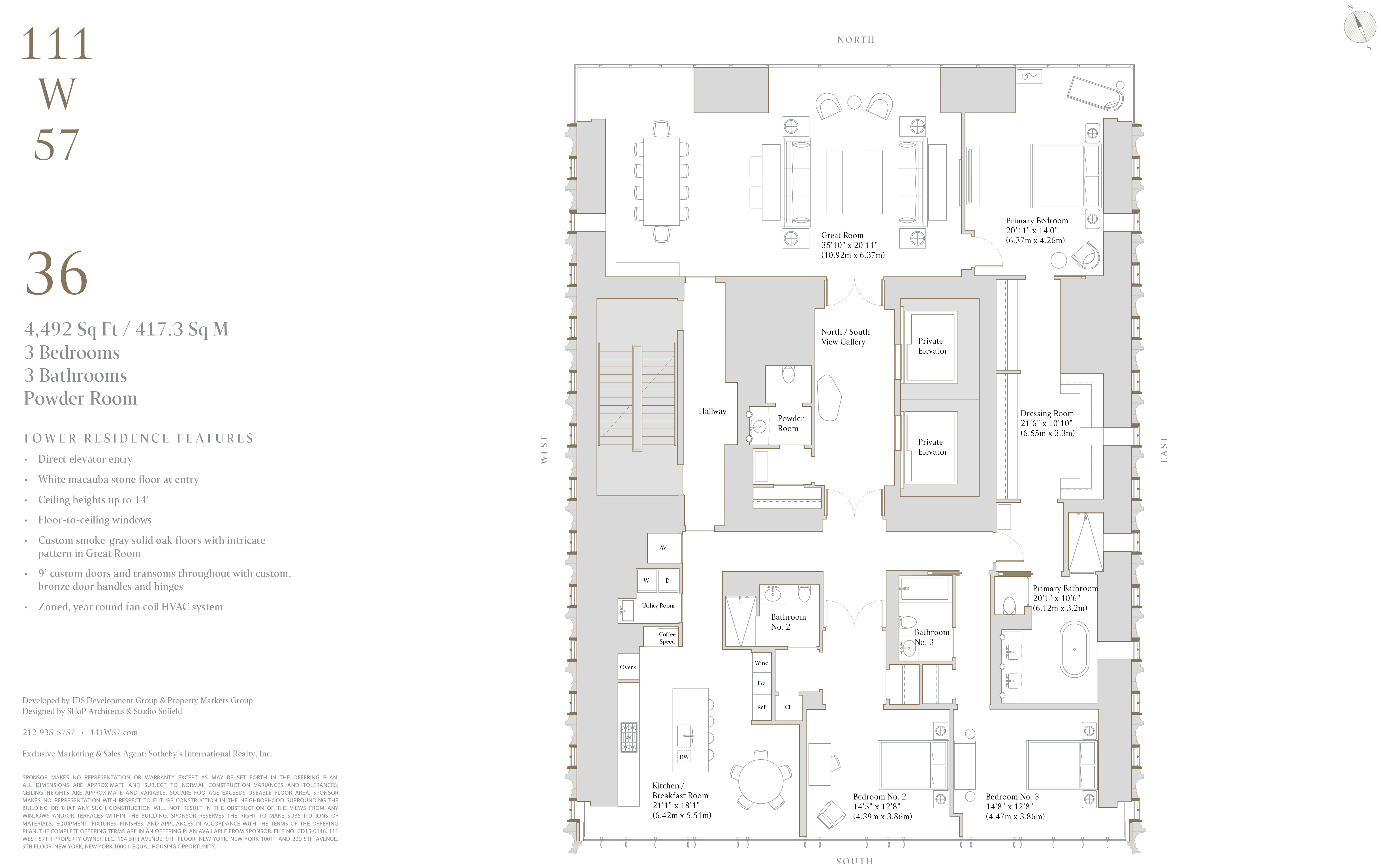 Designed by the renowned Studio Sofield, recognized for their impeccable craftsmanship, this 4,492 sqft residence offers a direct elevator Entry Gallery which leads into a sprawling full-floor, 3 Bedroom, 3.5 Bathroom Tower Residence.