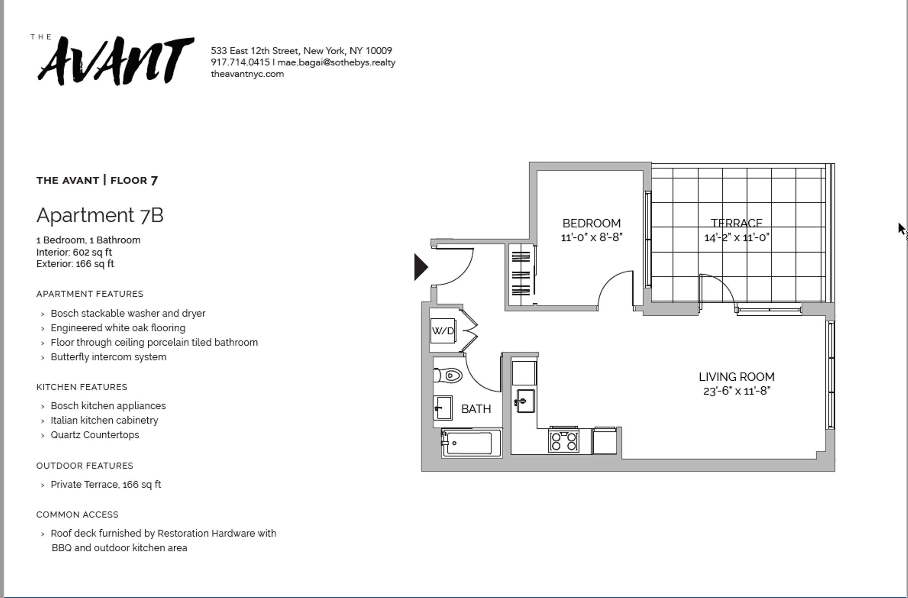 Envisioned by award-winning architects Bluarch, Residence 7B at The Avant showcases timeless modern finishes, refined craftsmanship, an oversized south-facing terrace, protected park views, and abundant natural light—making this one-bedroom a true standout in the vibrant East Village.